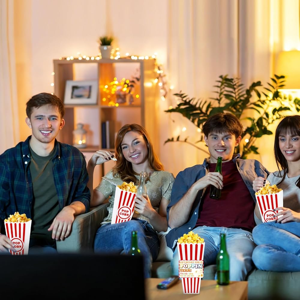 Versatile for Any Snack or Event: Not just for popcorn! These plastic popcorn cups work for candies, chocolates, trail mix, or even small dorm essentials. Perfect for graduation gift baskets, end-of-school parties,movie night, birthdays, sleepovers, or holidays like Christmas. Their compact, stackable design saves space when stored—ideal for students or party planners.