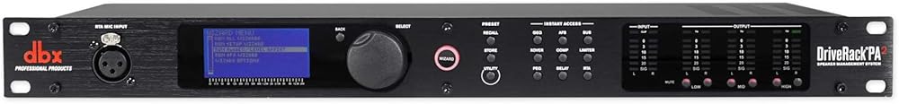 Package Includes: (1) DBX DriveRack PA2 Complete Sound Signal Processor Speaker Management System PA 2. (8) Rockville RCXFM20E-B 20 Foot Female to Male XLR Mic Cable Black 100% Copper. DBX DriveRack PA2 Complete Sound Signal Processor Speaker Management System. All New Setup Wizard. Streamlined AutoEQ . All New AFS (Advanced Feedback Suppression). Mobile Control (Android , iOS , Mac , Windows ). dbx Compression. dbx Limiting. Graphic EQ