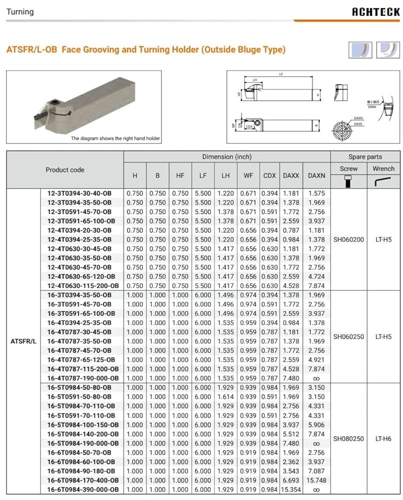 ATSFL 12-3T0591-65-100-OB حامل حز وتدوير الوجه (نوع الانتفاخ الخارجي) .750 ساق مربعة 5.50 OAL لحجم 3 إدخالات، 2.559 دقيقة 3.937 أقصى قطر.
