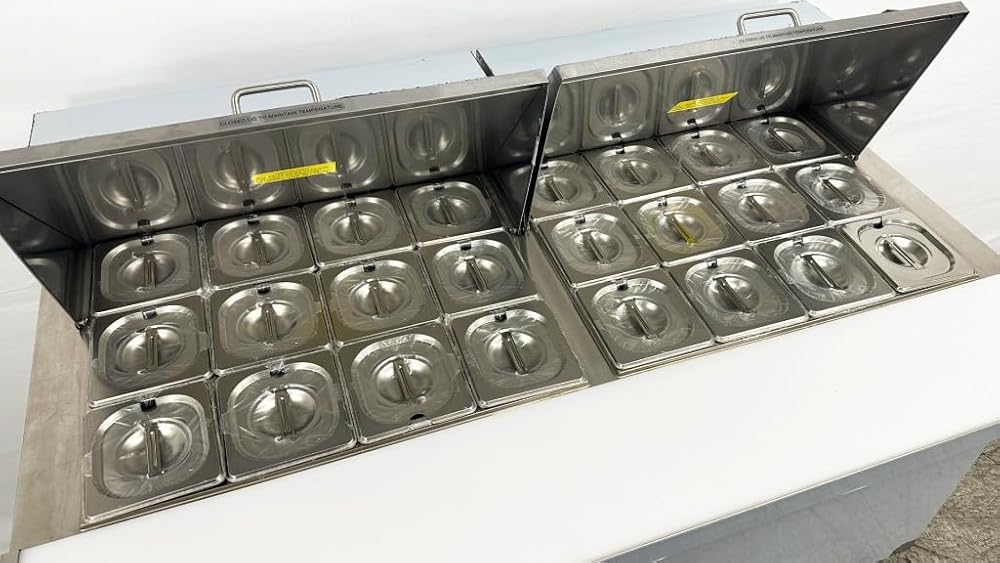 • INSULATED LID: A stainless steel insulated lid encloses the top to maintain proper, food safe temperatures. It features a lift-up design for fast and easy use.CASTERS INCLUDED: Four heavy-duty 4" casters (2 locking) are also included providing the unit with convenient mobility, making cleaning and servicing a breeze! Just roll the unit away from the wall.