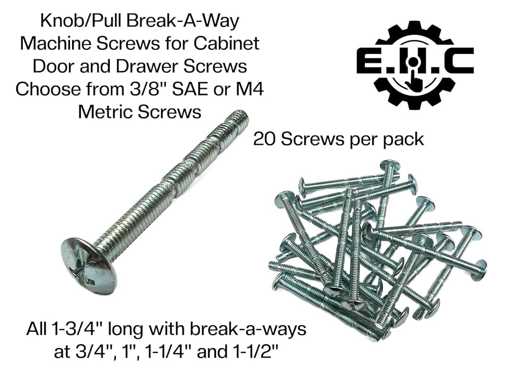 Knob/Pull Machine Screws (Break-A-Way) for Cabinet Door and Drawers Choose from 3/8" SAE or M4 Metric Screws All 1-3/4" Long by E.H.C