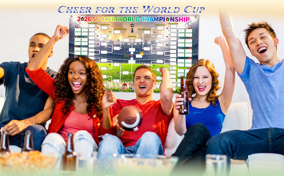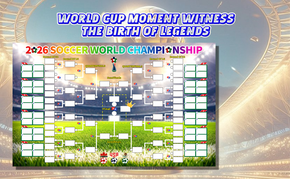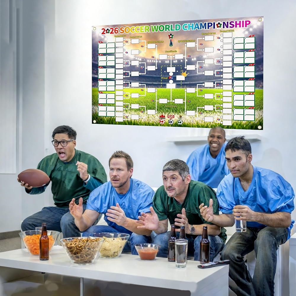 مركز قيادة مجموعة كأس العالم: يتميز بجدول البطولة الكامل لعام 2026 المكون من 48 فريقًا (المجموعة + مراحل خروج المغلوب) على قماش مانع للضوء مقاس 23 × 33 بوصة، مع رسم فني يحمل طابع البطولة على الجانب الخلفي. يمتص القماش الداكن الضوء المحيط من أجل رؤية خالية من الوهج.