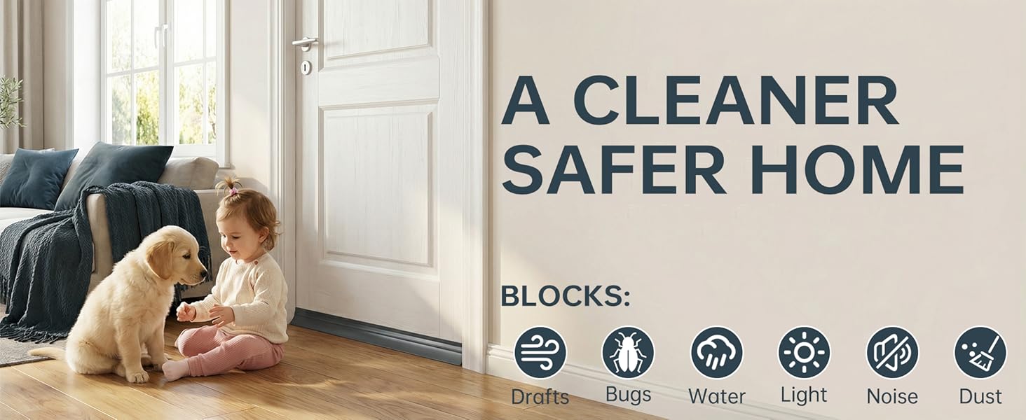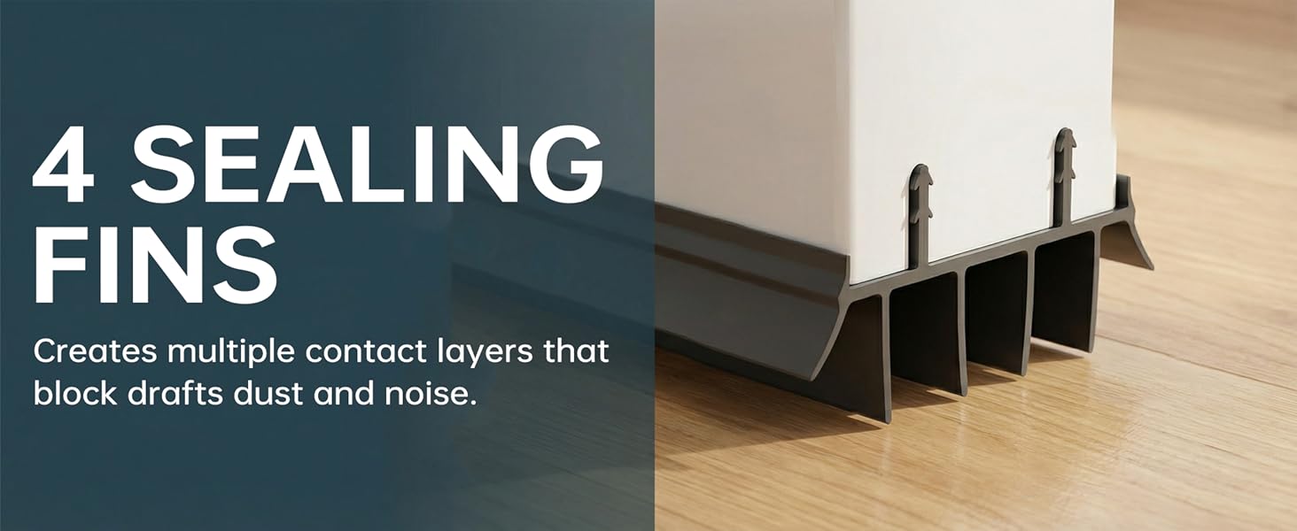 【مسح قوي لحجب الباب】تخلق زعانف الفينيل المرنة حاجزًا محكمًا أسفل الباب لمنع تيارات الغبار والهواء الخارجي. يساعد على تحسين الراحة الداخلية عن طريق سد الفجوة بين الباب والعتبة.