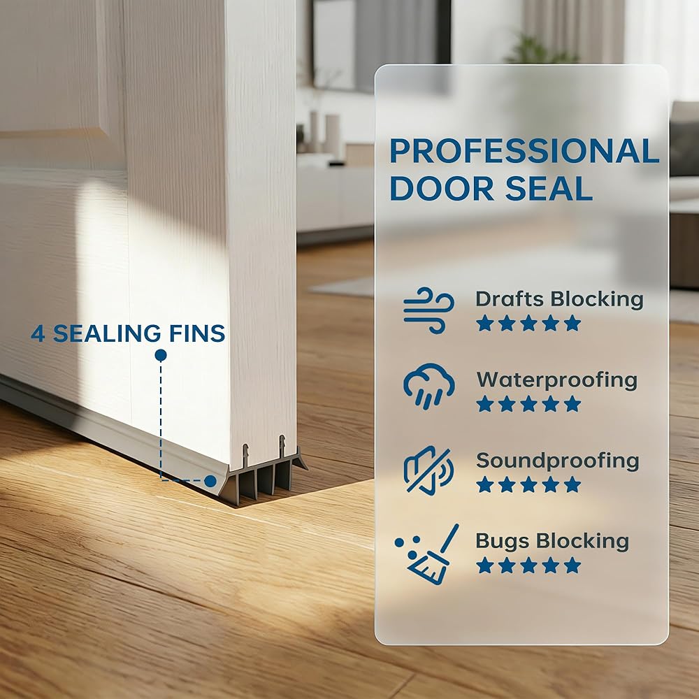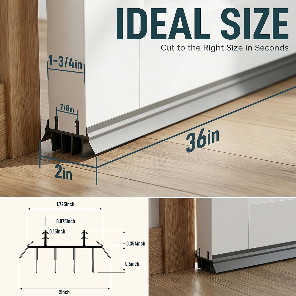 【سدادة مسودة الباب موفرة للطاقة】تقلل من تدفق الهواء عبر الجزء السفلي من الأبواب الخارجية مما يساعد على الحفاظ على درجة الحرارة الداخلية. يدعم كفاءة أفضل في التدفئة والتبريد مما قد يساعد في تقليل فقدان الطاقة.