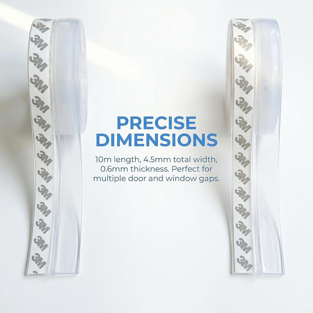 Upgrade Your Home's Comfort with Our 33Ft Transparent Silicone Door Seal Strip Say goodbye to drafts, noise, and energy waste with our versatile 33Ft door/window seal strip. Designed for maximum coverage and durability, this 45mm-wide self-adhesive weather stripping is the ultimate solution for sealing gaps around doors, windows, cabinets, and more. Why Choose Our Silicone Seal Strip?Crafted from premium-grade transparent silicone, our weatherstripping is built to withstand the test of time. Unlike flimsy plastic alternatives, our silicone remains soft and flexible year-round, conforming to irregular gaps to create an airtight seal. It resists harsh UV rays, temperature fluctuations, and wear, ensuring it won't crack, harden, or discolor over time. The strong 3M adhesive backing makes installation a breeze. The self-adhesive layer bonds securely to most smooth surfaces (including wooden doors, aluminum windows, glass partitions, and metal frames) without leaving residue. With a full 33 feet of length, you can easily cut the strip to your desired size, making it suitable for both small and large sealing projects around your home, office, or garage. Beyond Sealing GapsThis multi-purpose strip isn't just for weatherproofing—it also acts as an effective soundproofing barrier, reducing outside noise to create a peaceful living space. Whether you're looking to insulate your home in winter, keep cool air inside in summer, or simply block dust and insects from entering, our transparent silicone seal strip has you covered. The transparent design is both practical and stylish. It blends invisibly with any interior design, adding no visual clutter to your space. Invest in our 33Ft door seal strip today and enjoy a more comfortable, energy-efficient, and quiet home!