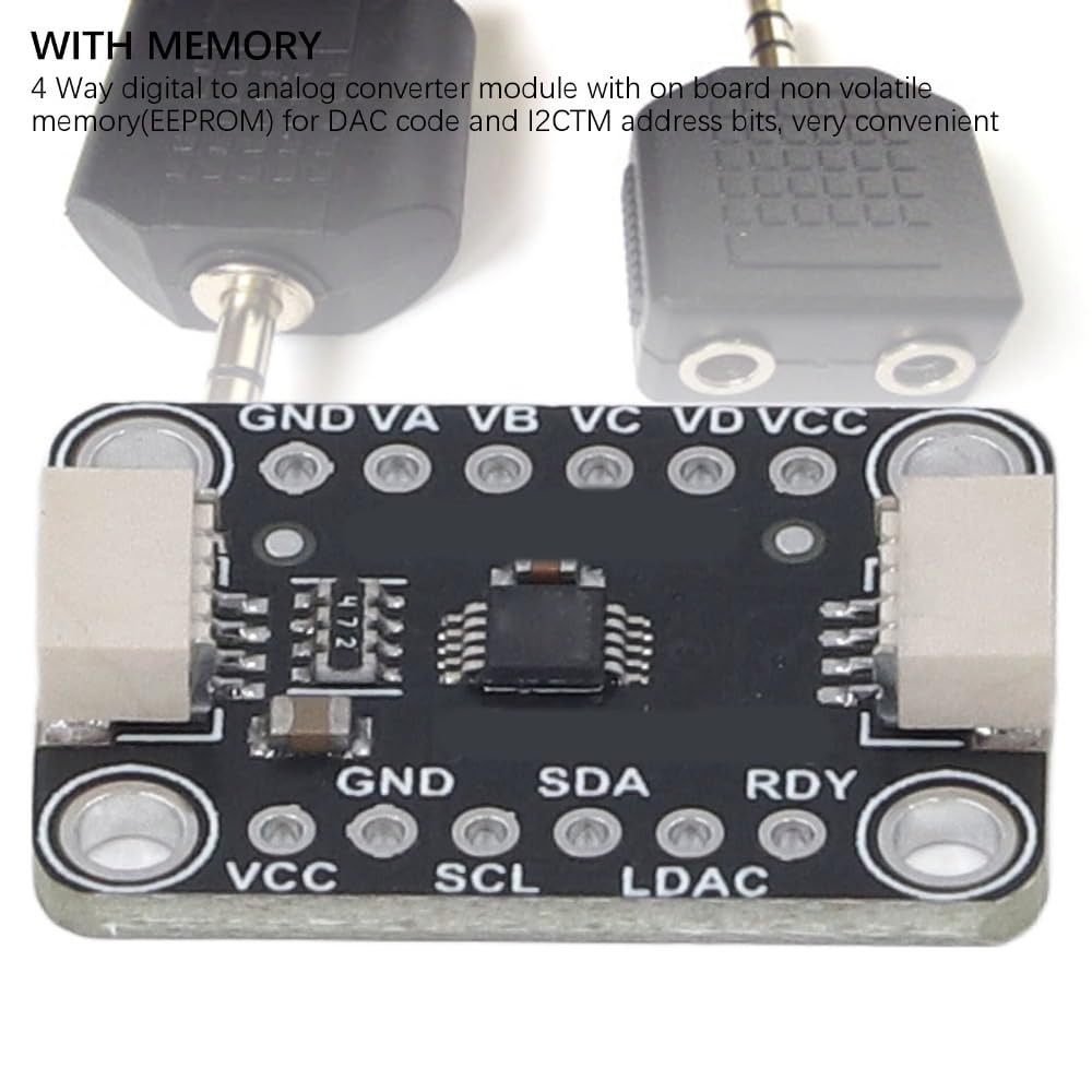 Quad digital to analog converter module with 12 bit resolution and onboard EEPROM for reliable voltage output. Ideal for industrial automation, test equipment, and embedded systems requiring precise analog signal generation. Solves the need for multi-channel DAC solutions with non-volatile memory storage