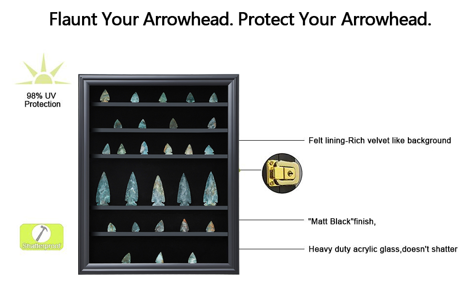 حافظة عرض رأس السهم من KCRasan، صندوق ظل رأس السهم الأمريكي الأصلي، خزانة عرض مجموعة رأس السهم على الحائط للعقيق، أوبال، كريستال، رؤوس سهام، نقاط الرمح، أسود صغير
