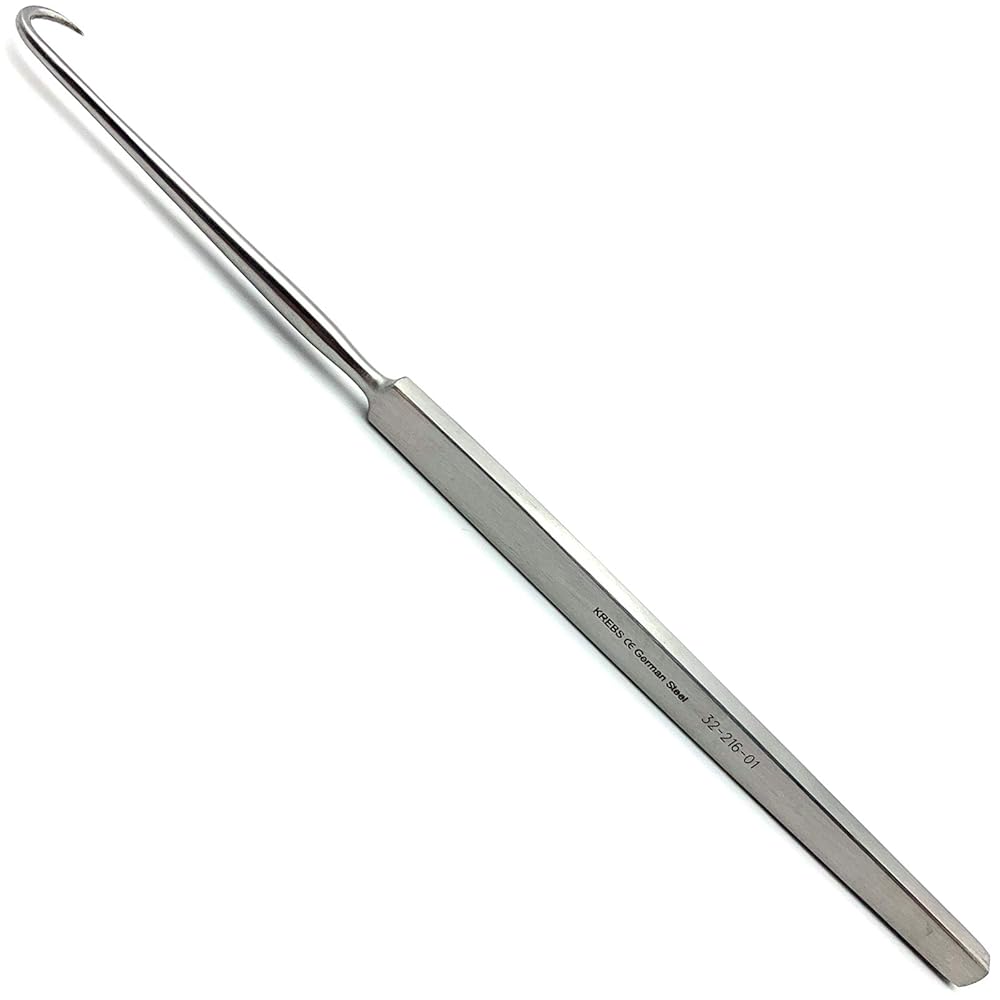 The Gillies Skin Hook is used in general surgical procedures, like mastectomies or thyroidectomy procedures, to offer gentle retractions of the skin's edges. They are also used to prevent the improper alignment of a wound's edges while suturing curved or lengthy wounds, especially in apparent wounds where final appearance is paramount. This makes it an essential instrument in plastic surgery. It has an overall length of 16 cm, and consists of a flat handle as well as a long slender shaft with a curved sharp tip to hold the skin with a single puncture. Medikrebs manufacture Gillies Skin Hooks from the finest quality of stainless steel materials that can be sterilized and reused for years of reliable operations in general surgical procedures.