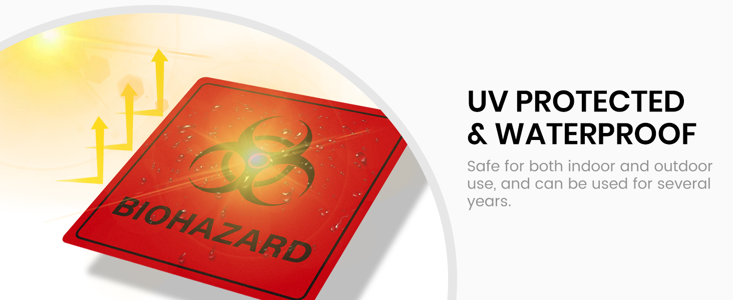 يستخدم على نطاق واسع: مثالي لوضع علامات على صناديق النفايات ذات المخاطر البيولوجية، وحاويات العينات، ومختبرات الأبحاث، ومناطق التخزين، والعيادات، والصيدليات، والمرافق الصناعية. يساعد في الحفاظ على الامتثال للسلامة ويضمن الإبلاغ الواضح عن المخاطر