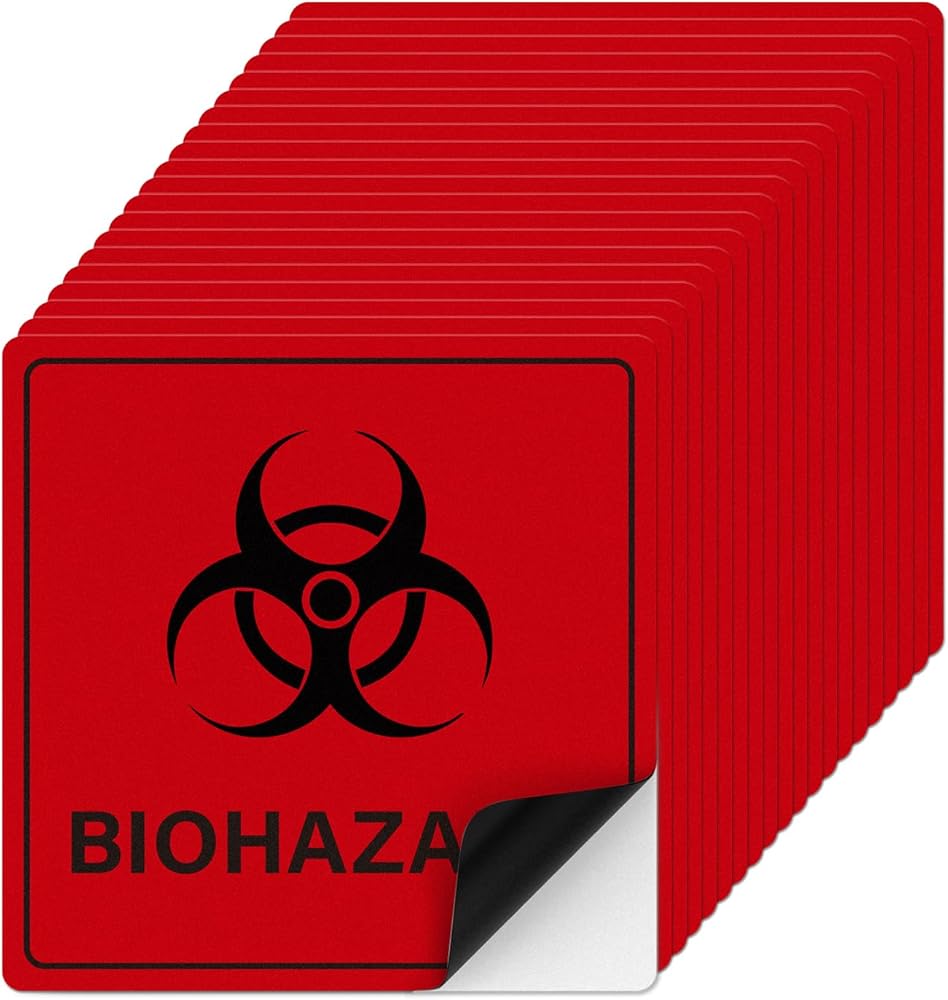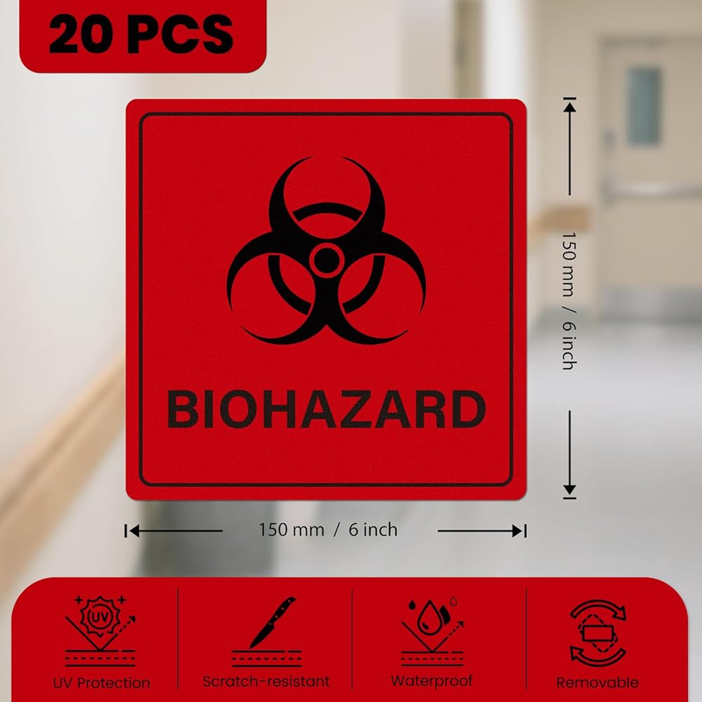 20 عبوة من ملصقات التحذير من المخاطر البيولوجية، مقاس 15.24 سم × 15.24 سم، كبيرة باللون الأحمر ذاتية اللصق، علامة خطر حيوي مقاومة للماء ومقاومة للتمزق، علامات أمان للمختبرات وحاويات النفايات الطبية الخطرة، تحذير للمنشأة