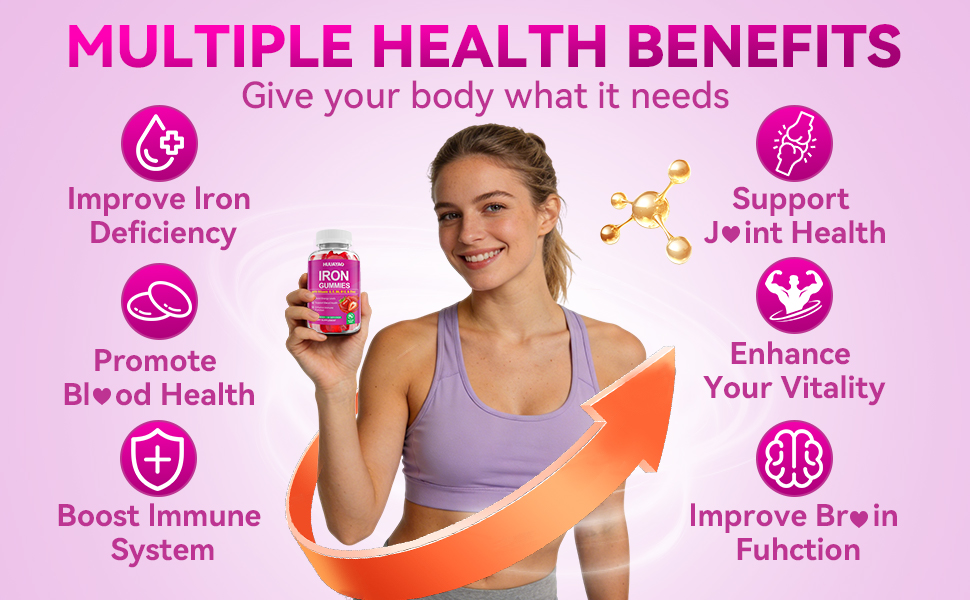 تعزيز مستويات الحديد: تحتوي علكات الحديد على مجموعة متنوعة من الفيتامينات C وA وB6 وB12، والتي تساعد الحديد على أداء وظيفته بشكل أفضل، كما يمتص الجسم الحديد بشكل أكثر فعالية. بالإضافة إلى ذلك، يمكن لمجموعة متنوعة من الفيتامينات أن تساعدنا بشكل فعال في تعزيز مكملات الطاقة. يمكن أن يساعدنا مزيج B6 وB12 على تقليل التعب وتحسين الانتباه وتعزيز المناعة.