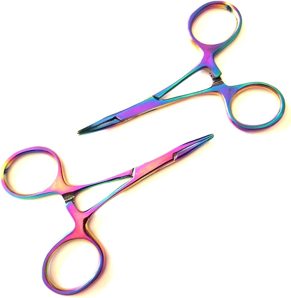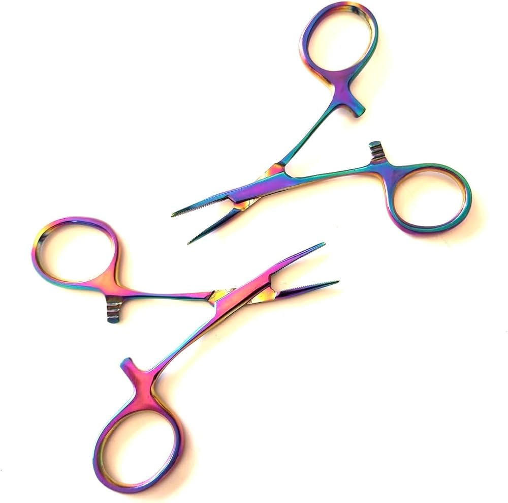 2 ملقط قفل مرقأة البعوض متعدد الألوان بألوان قوس قزح من التيتانيوم مقاس 3.5 سم كماشة مستقيمة ومنحنية من الفولاذ المقاوم للصدأ متعددة الأغراض مثالية للممرضات وملقط الصيد والحرف اليدوية والهوايات