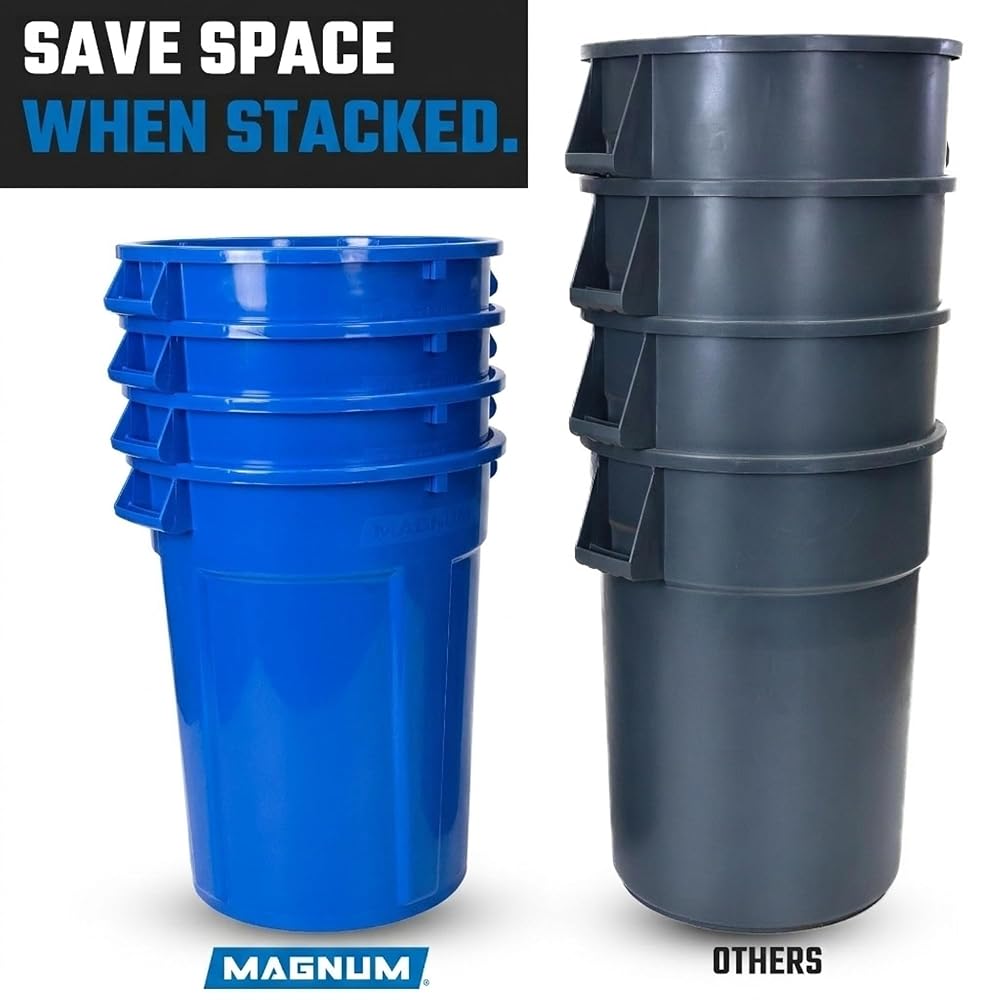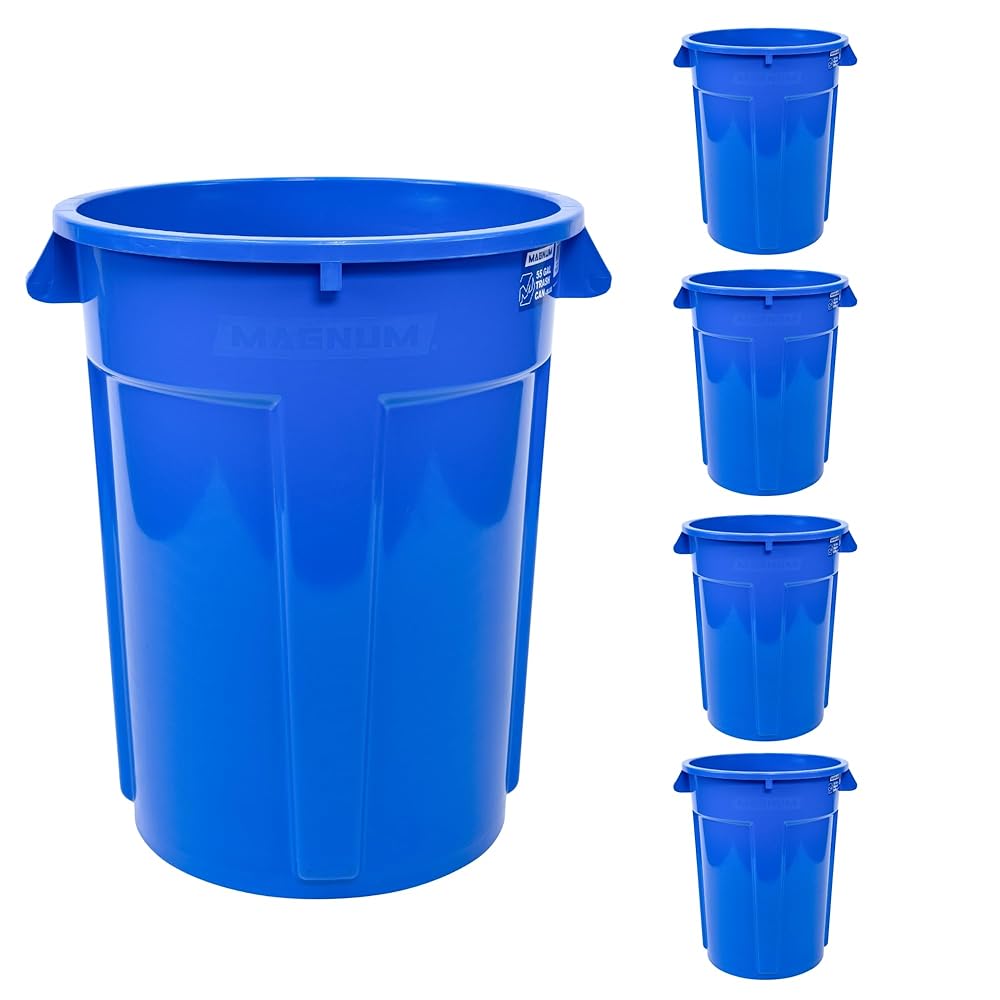 سلة المهملات Magnum سعة 55 جالون، باللون الأزرق عالي الرؤية، درجة البناء، بلاستيك شديد التحمل، موقع العمل جاهز لحمل القمامة وإعادة التدوير، CMTC-C000-55B05 (5 عبوات)
