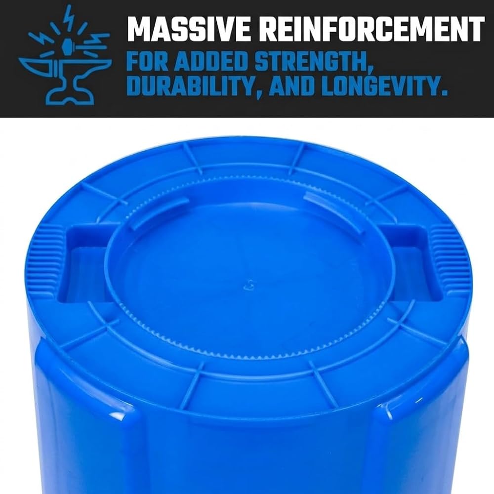 DURABLE HIGH VISIBILITY HEAVY DUTY PLASTIC: Our construction grade blue trash can is made of high-quality plastic resistant to UV rays, making this garbage can perfect for even the most extreme environments, without fading, warping, cracking or crushing. Perfect for high viz situations like separation of recyclables from regular garbage. NSF 2 and 21 Compliant.