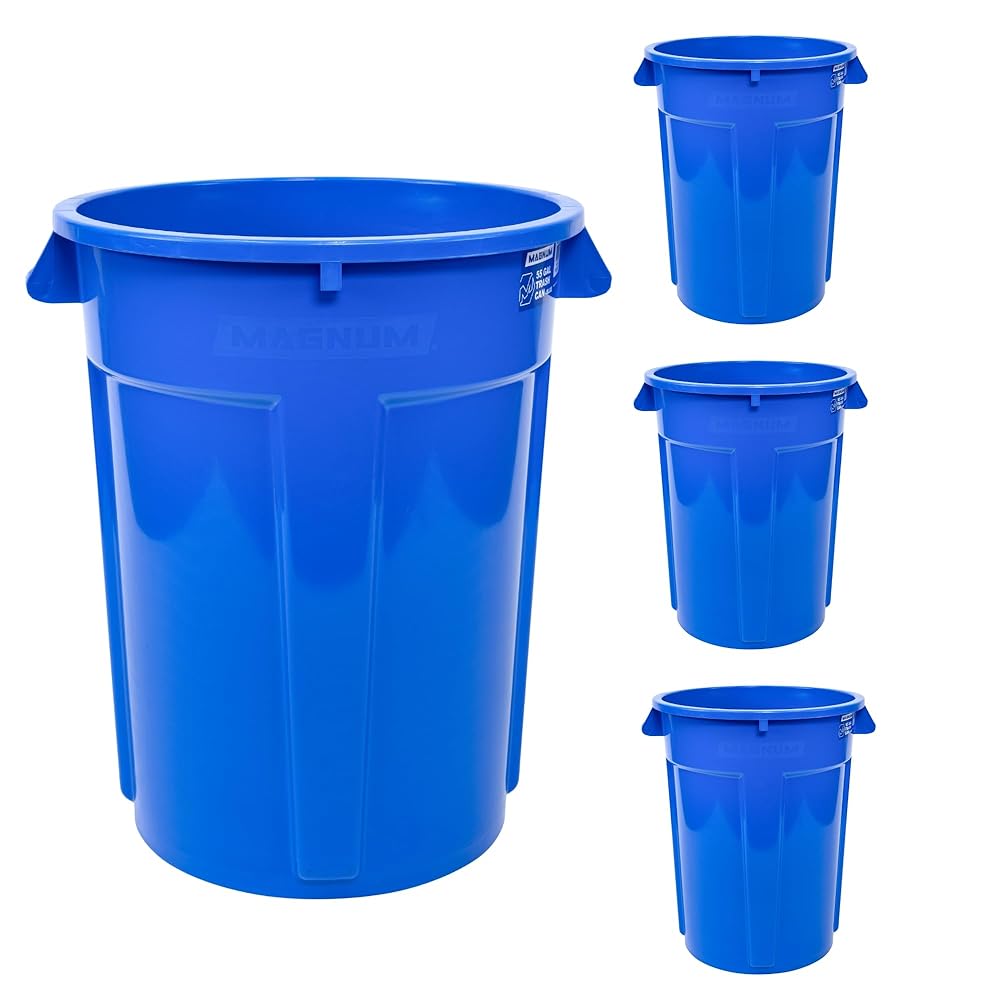 سلة المهملات Magnum سعة 55 جالون، باللون الأزرق عالي الرؤية، درجة البناء، بلاستيك شديد التحمل، موقع العمل جاهز لحمل القمامة وإعادة التدوير، CMTC-C000-55B04 (4 عبوات)