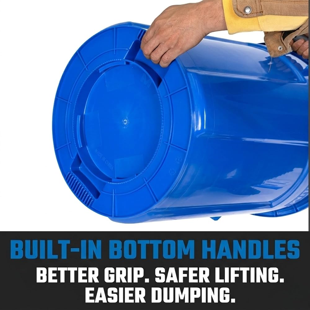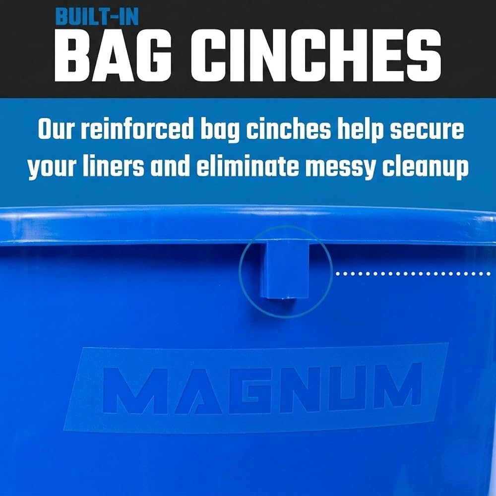 EASY-TO-LIFT TOP AND BOTTOM HANDLES: Our trash cans boast low profile ergonomic handles on top and convenient grip handles on the bottom of the can for easy lifting and dumping. Slats along the top handles make it easy to secure standard trash bags and garbage liners. The MAGNUM lid (sold separately) conveniently hangs off the side of one handle, so you will never misplace and lose your lid again.