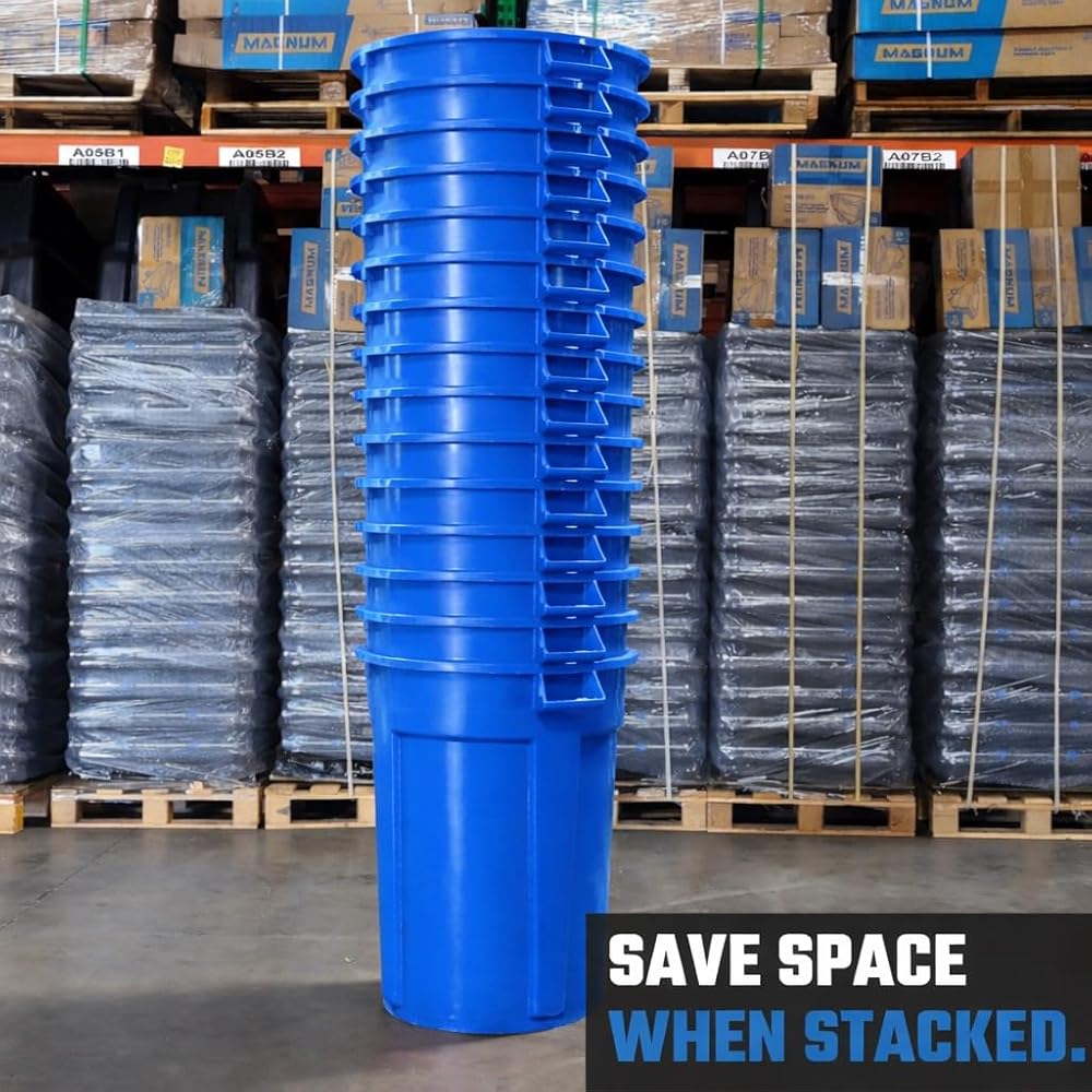 MAGNUM introduces the CMTC-CLD0-44B05 Blue Commercial Trash Can 44 Gal. heavy duty commercial trash can. The Magnum trash can is designed with all of the necessary high quality features that make it a convenient yet ultra-sturdy construction grade quality product. It Is made of durable high quality polypropylene plastic designed to endure extreme environments and out last the competition whether it is hot or cold, wet or dry. The Magnum trash can resists UV rays without fading or warping and can handle being tossed around without cracking or crushing. NSF 2 and 21 Compliant.