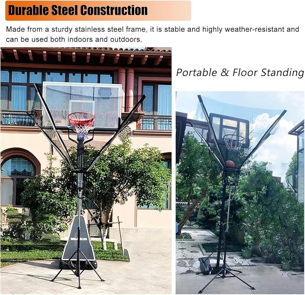 ??【 Metal Basketball Shot Return System 】 The basketball return net system is made of a sturdy stainless steel frame and includes a visible black rebounder net, which is stable and highly weather-resistant, suitable for indoor and outdoor use.