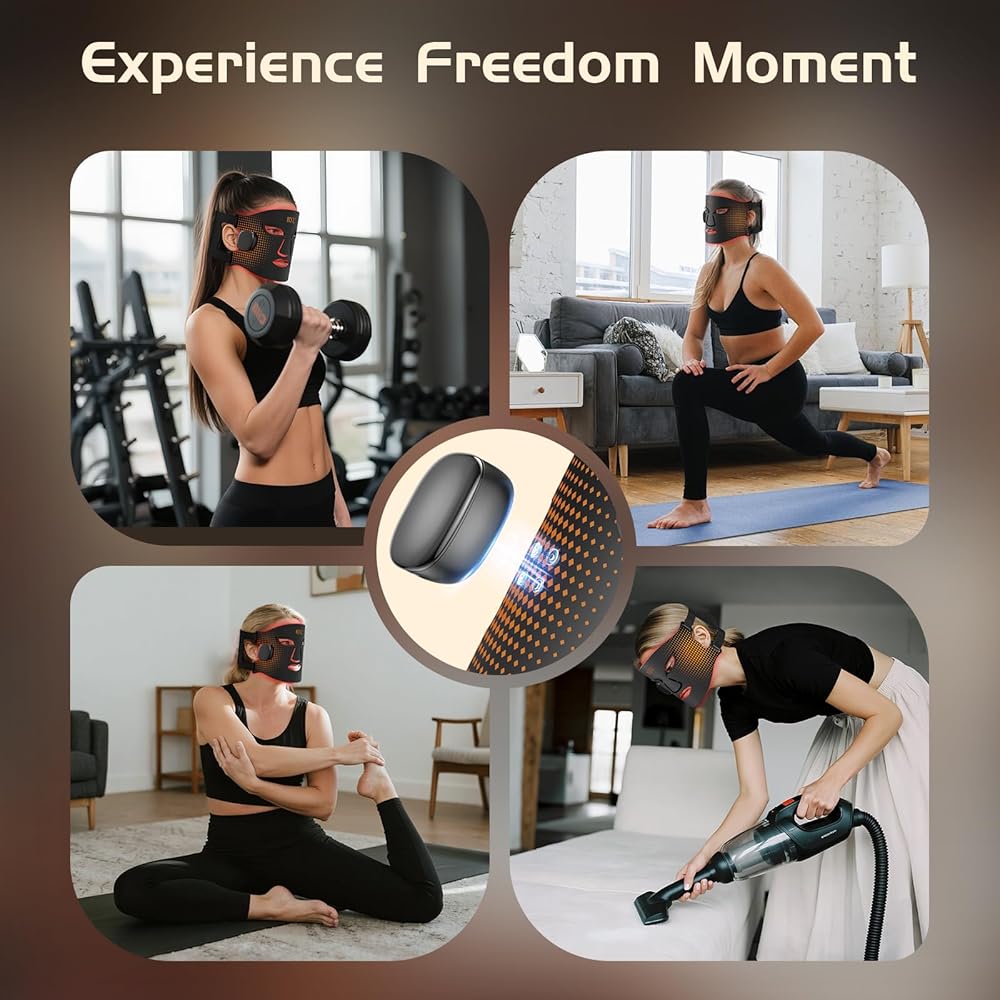 بدون استخدام اليدين ومناسب للسفر: مصمم لأنماط الحياة العصرية، يتضمن قناع العلاج بالضوء LED اللاسلكي أحزمة رأس قابلة للتعديل وواقيات للعين قابلة للفصل من أجل ارتداء آمن ومريح. إن هيكلها الخفيف الوزن والقابل للطي وسهولة الحمل يجعلها مثالية للاستخدام أثناء السفر أو اليوغا أو الاسترخاء. تستخدم إعدادات التحكم جهاز التحكم عن بعد الصغير المرفق بسهولة، وهو مثالي للقيام بمهام متعددة مع تحسين بشرتك.
