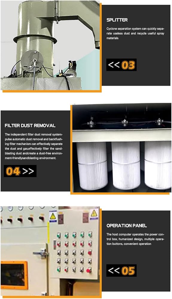 The machine incorporates an advanced cyclone separation system that precisely distinguishes spent material from reusable abrasive. This intelligent recovery mechanism optimizes media usage, significantly reducing operational costs associated with constant abrasive replenishment.