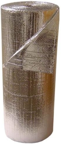 2 layers of metalized mylar foil with a 3/16" bubble in between. This can be used in a variety of applications including building and window insulation, heating and cooling ducts, radiant floor heating, plumbing applications, insulating your garage door or simply as a sun/heat block for your car windshield.