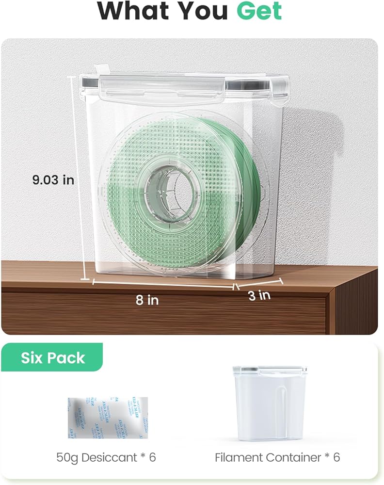 Filament Storage Box : Keep your 3D printing filament in pristine condition - this filament storage box prevents exposure to water,dust,moisture.This kit include:50g desiccant *6,filament container*6