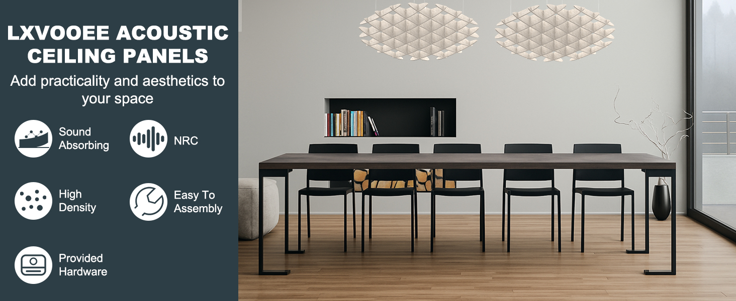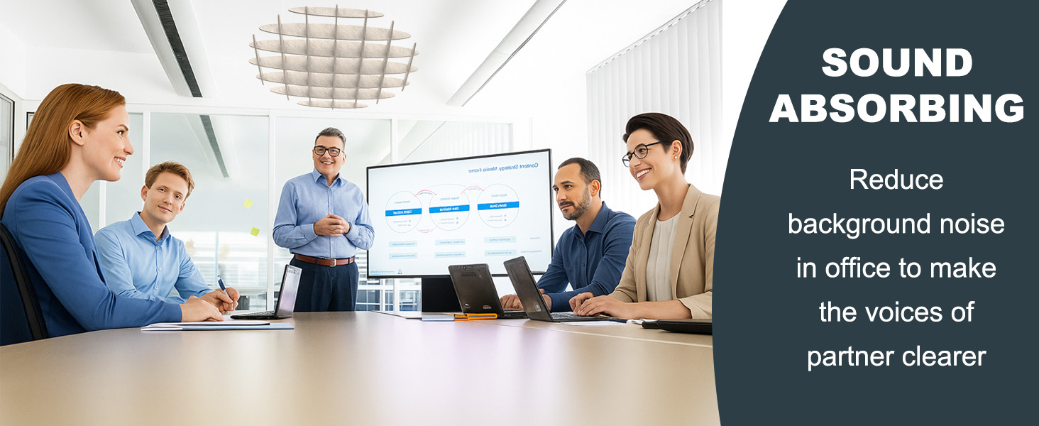 امتصاص الصوت: لباد بوليستر عالي الكثافة وشكل وافل يجعل السحابة الصوتية يمكنها امتصاص ضوضاء الخلفية بشكل فعال، والتقاط الأصداء وتنعيم الصوت، ومناسبة للمكتب، واستوديو الموسيقى، والمطاعم، والفصول الدراسية، وما إلى ذلك، خاصة للمساحة المفتوحة حيث تكون معرضة للصدى.
