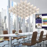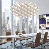سهلة التجميع: وفقًا لتعليمات التثبيت المرفقة، قم بتمرير فتحات اللوحة معًا لتجميع لوحة سحابة الصوت، وتوصيلها بالكابلات والدعامة، ثم قم بتعليق اللوحة في الفتحات المحفورة مسبقًا على السقف