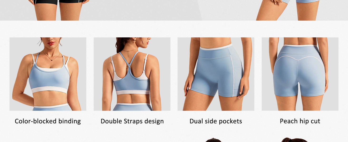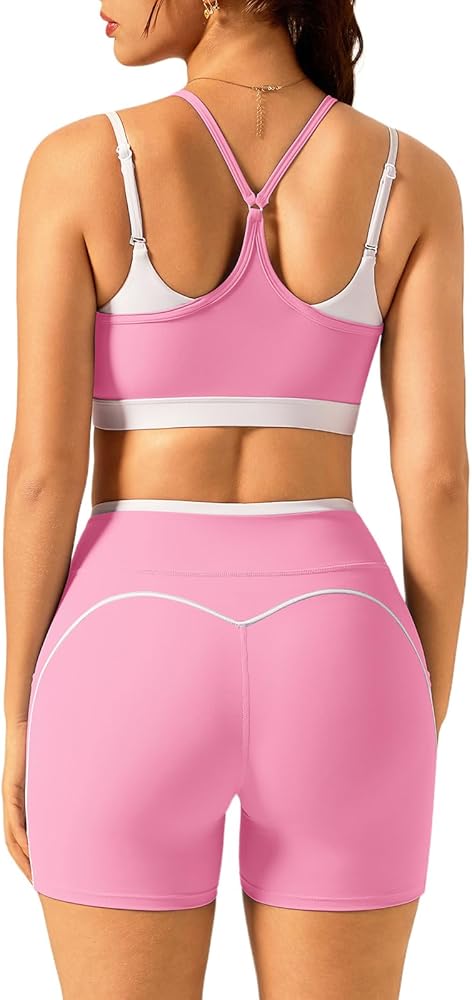 شورت عالي الخصر: مع قصة عالية الخصر وحواف بألوان متباينة، فهو يزيد من نسبة الخصر إلى الورك ويرفع الوركين. الخياطة الجانبية لأطقم التمرين المكونة من قطعتين تحدد المنحنيات الساحرة للساقين والأرداف. يمكن للجيوب الجانبية العميقة تخزين الهواتف المحمولة أو كرات التنس أو البطاقات بسهولة، مما يحرر يديك أثناء الجري أو البيلاتس. إنه خيار ممتاز لمجموعات الجري النسائية ومجموعات الصالة الرياضية النسائية. مجموعة التمارين الرياضية، ملابس اليوغا للنساء، أطقم الصالة الرياضية للسيدات، طقم نسائي مكون من قطعتين.