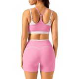 حمالة صدر رياضية: مجموعة حمالة صدر رياضية للنساء برقبة دائرية وتصميم بدون ظهر، مزيج الألوان المتباين يخلق تأثيرًا مذهلاً على شكل طبقات. حزام الكتف الرفيع القابل للتعديل والحاشية المرنة يمنعان الحركة لأعلى أو لأسفل بشكل فعال. توفر وسادة الصدر القابلة للفصل الراحة وتزيل الحاجة إلى ارتداء ملابس داخلية إضافية. مجموعات ملابس رياضية مناسبة للنساء. مجموعات تجريب للنساء، مجموعات اليوغا النسائية، مجموعات بيلاتيس للنساء، مجموعة السراويل النسائية، ملابس التمرين للنساء.
