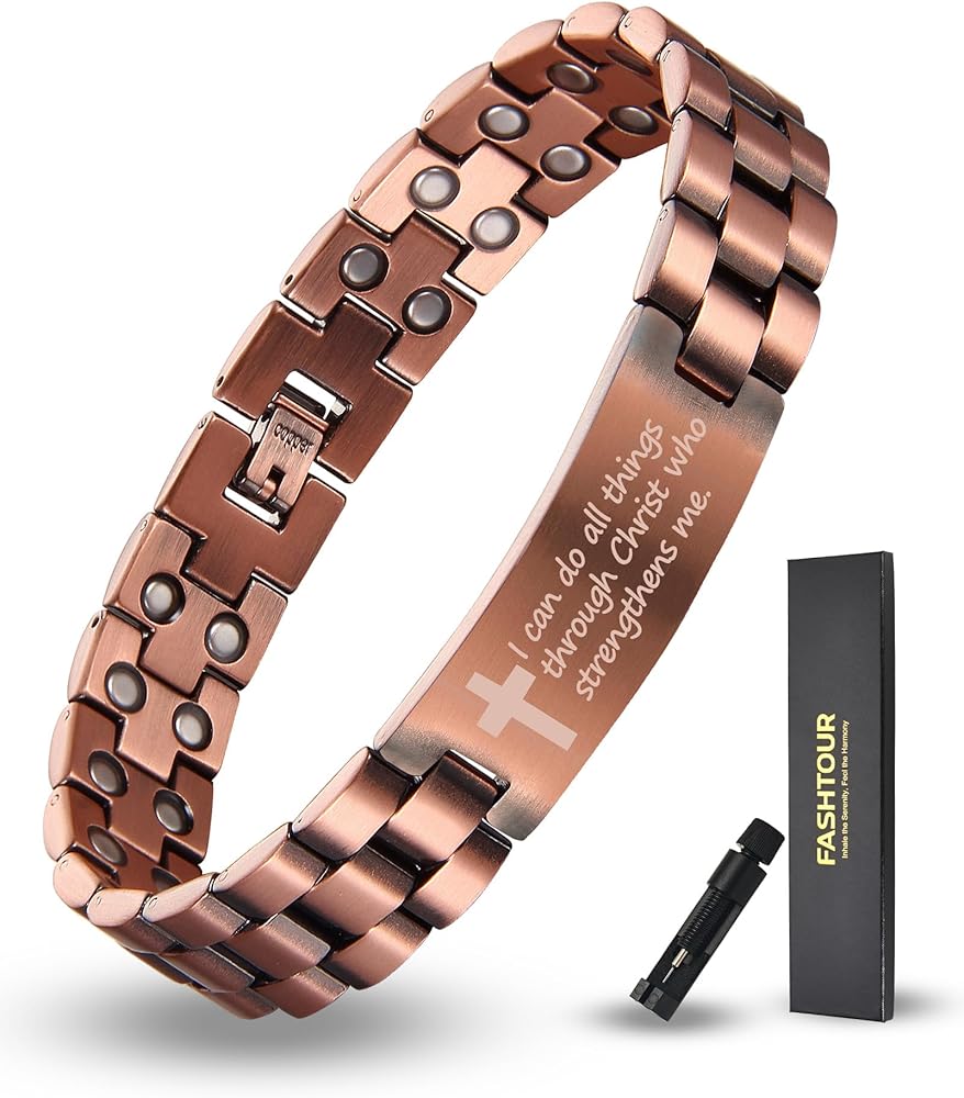 High Quality:Well Crafted Magnetic Bracelet For Men And Women, Made With High-Quality Copper, Lead & Nickel Free, Scratches Resistant. Bring You The Best Experience With The Best Quality!Suitable For Many Occasions:Our Magnetic Bracelet Is Suitable For Many Occasions. Wearing It, You Are The Most Eye-Catching In The Audience, And Everyone Will Be Attracted To You! So Fashionable That No One Doubts It Is A Magnetic Bracelet!Adjustable Size:Thanks To The Adjustable Design, Our Copper Bracelet Fits Most Men's or Women's Hands. You Can Adjust The Size Of The Bracelet Directly With Your Hand, Which Is Very Convenient. It Looks So Stylish! The Elegant And Minimalist Design Complements Every Outfit And Can Be Worn At Any Occasion.How To Clean The Magnetic Copper Bracelet?It Is Natural For Copper To Change Its Color And Leave Green Deposits On The Skin. This Happens When The Copper Reacts With Water Or Air, By The Process Called Oxidization, And This Is A Natural Process. The Green Deposits On The Skin Can Be Easily Washed Off With Soap and Water.Soak The Bracelet In A Mix Of Water Lemon Juice Or Vinegar. Rinse The Bracelet With Warm Water And Dry Thoroughly With A Soft Cloth. Apply Tomato Ketchup On The Bracelet. Rinse With Warm Water And Dry Thoroughly With A Soft Cloth.Warning!! This product is NOT a substitute for proper medical care. DO NOT use the product if you: have a pacemaker, defibrillator, insulin pump, or any other implanted electro-medical device, or are pregnant.