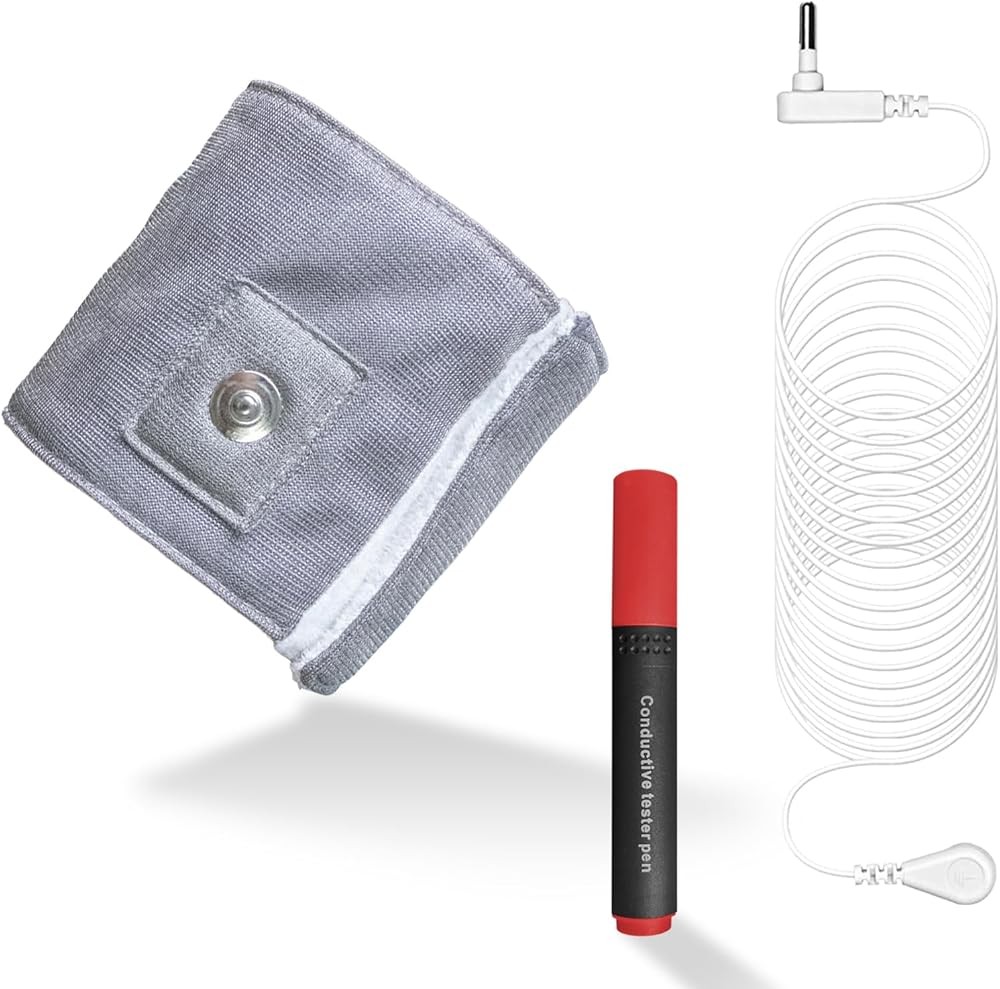 حزام معصم تأريض بألياف فضية، سوار معصم تأريض قابل للتعديل، تحسين طاقة النوم، يتضمن سلك تأريض بطول 15 قدمًا (2.8 * 10.2 بوصة) in Kuwait