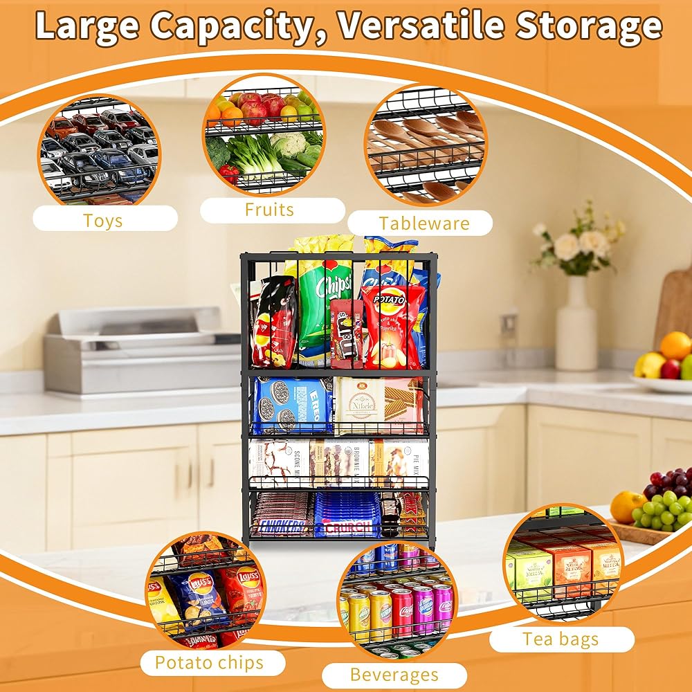 • 【سعة كبيرة، تخزين بدون قلق】يتميز منظم الوجبات الخفيفة لرف المؤن بثلاث سلال شبكية واسعة وإطار من الحبال المرنة، مما يوفر تصميمًا فريدًا. يمكن لمنظم الوجبات الخفيفة أن يستوعب بسهولة مجموعة متنوعة من الوجبات الخفيفة مثل رقائق البطاطس والفشار والحلوى والمكسرات، بالإضافة إلى العلب وأكياس الشاي. تتيح المساحة الواسعة عرضًا متنوعًا للوجبات الخفيفة وتلبية احتياجات التخزين والعرض في سيناريوهات مختلفة.