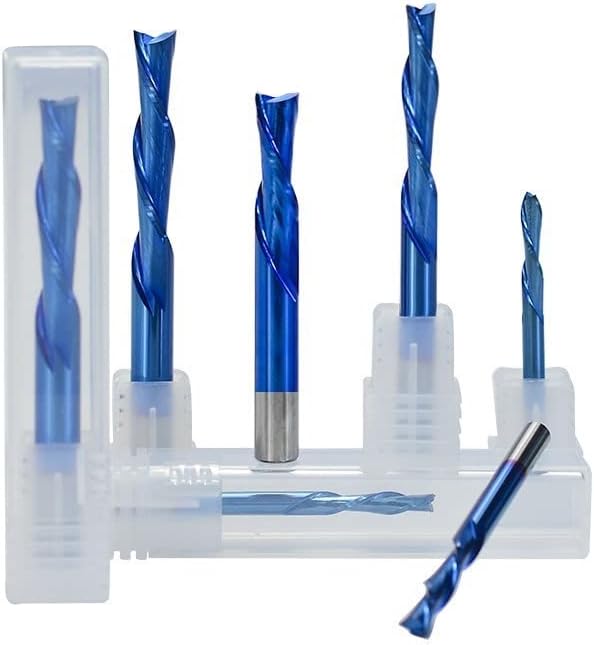 لقم توجيه حلزوني 2 قاطع فلوت 3.175-12 مم عرقوب اليد اليسرى للأسفل قاطع كربيد لولبي نهاية مطحنة حتى أسفل لقمة ضغط لنحت الخشب