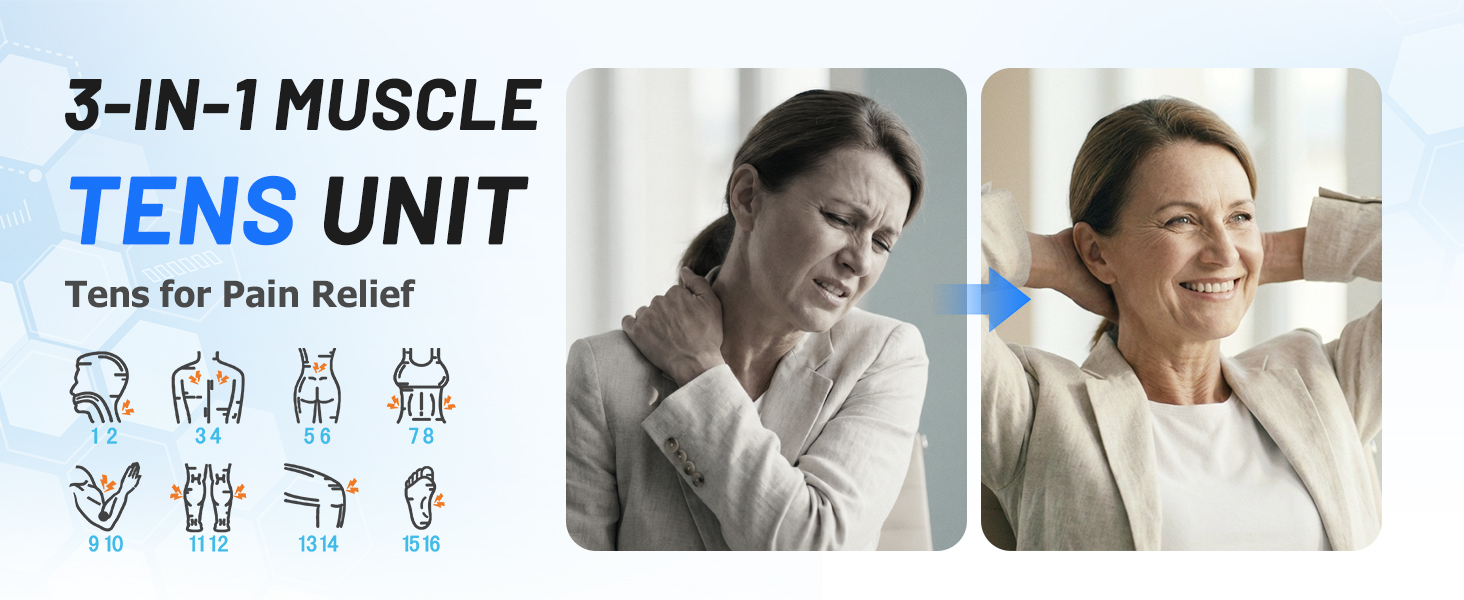 تخفيف الألم بدون أدوية للاستخدام المنزلي - يوفر محفز العضلات المكون من عشرات الوحدات بديلاً غير جراحي لإدارة الألم. يعمل جهاز محاكاة تقلصات الدورة الشهرية بشكل فعال كجهاز محاكاة للدورة الشهرية للرجال والنساء. باستخدام تقنية محاكاة جسم الإنسان والتحكم الذكي بالكمبيوتر الدقيق، فإنه يخفف من آلام العضلات في الكتفين والظهر والرقبة والذراعين والساقين من ممارسة الرياضة أو العمل المنزلي. آلات العشرات المثالية لتخفيف الآلام بدون دواء
