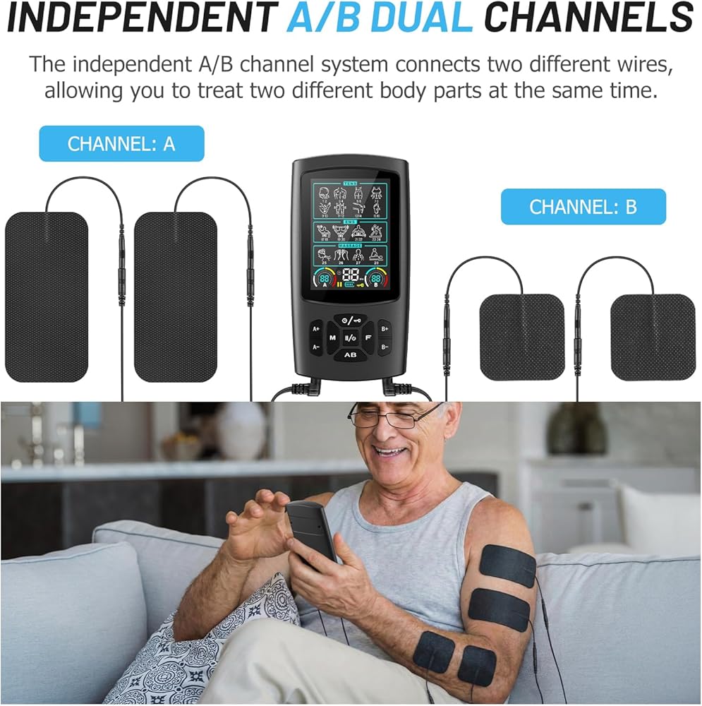 28 وضعًا و40 مستوى كثافة مع قنوات مزدوجة A/B - يتميز محفز العضلات الممتاز هذا المزود بتقنية التحفيز الكهربائي بقدرة تحفيز العضلات اللاسلكية. يسمح النظام اللاسلكي بعشرات الوحدات بإعدادات كثافة مستقلة لكل قناة. سواء كنت بحاجة إلى جهاز تحفيز لاستعادة العضلات أو عشرات الوحدات لتخفيف الألم، فإن جهاز تحفيز العضلات لنمو العضلات يوفر لك ذلك. جهاز التدليك الكهربائي للعضلات بحجم الجيب للاستخدام في المكتب أو السيارة أو السفر