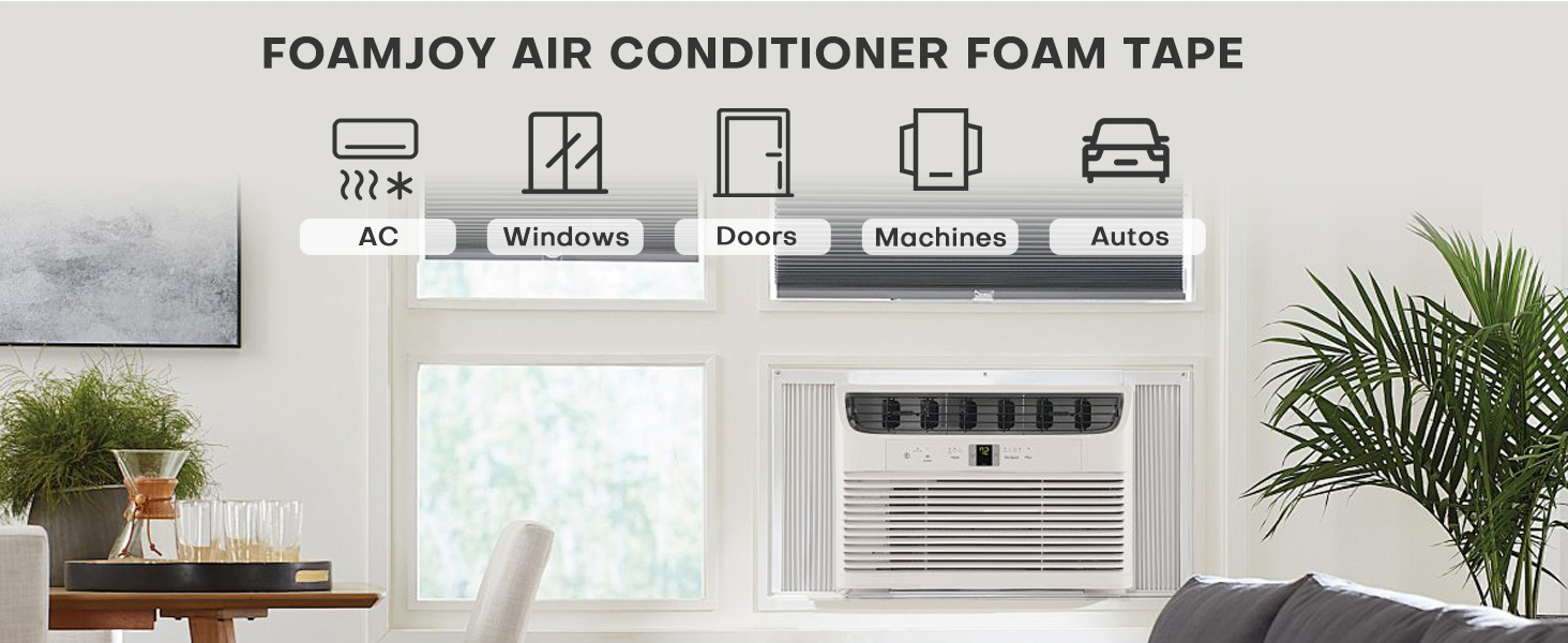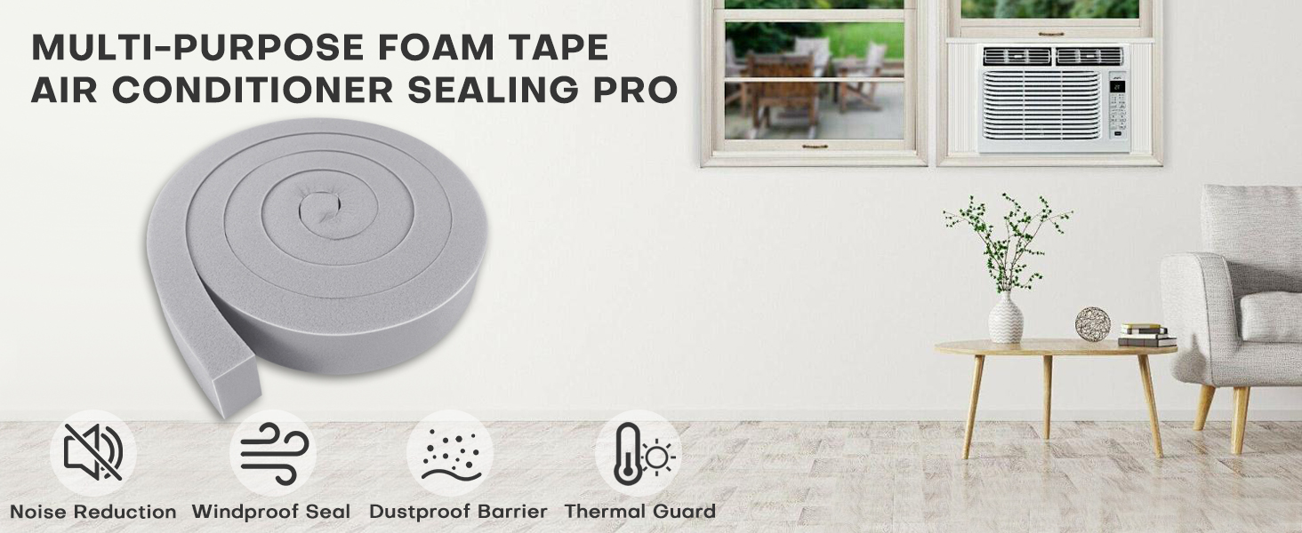 【موفر للطاقة】يغلق فجوات 0.1 بوصة - 3 بوصة حول وحدات عزل مكيف هواء النافذة. تقليل هدر طاقة التدفئة والتهوية وتكييف الهواء (HVAC) عن طريق منع تسرب حرارة الصيف وبرودة الشتاء.