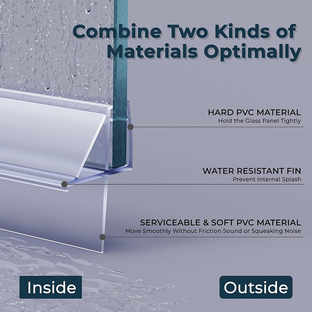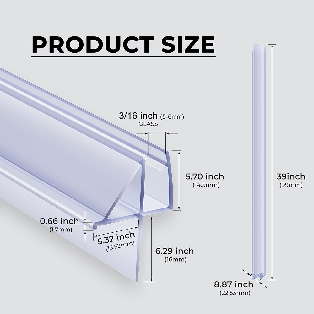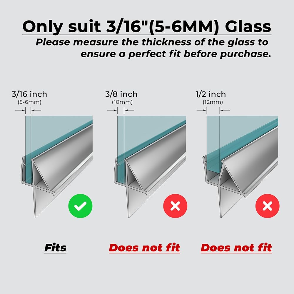 Perfect Fit for 3/16" Thick Glass: Tailored to fit precisely with 3/16" thick glass shower doors, ensuring a snug and secure seal that prevents leaks effectively. Fits for 3/16"(5-6mm)thickness glass shower door.