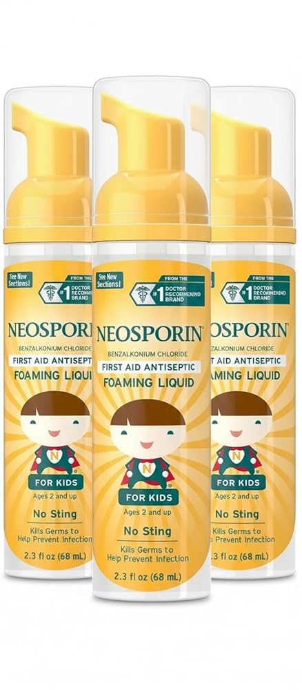 - First Aid Antiseptic Foam for Kids: Neosporin wound cleanser specially formulated for children's sensitive skin