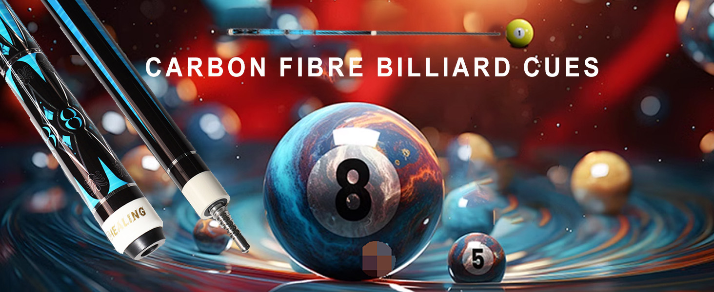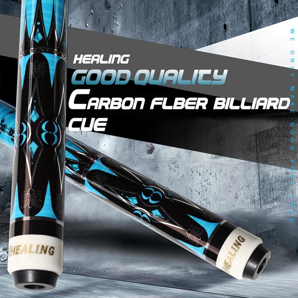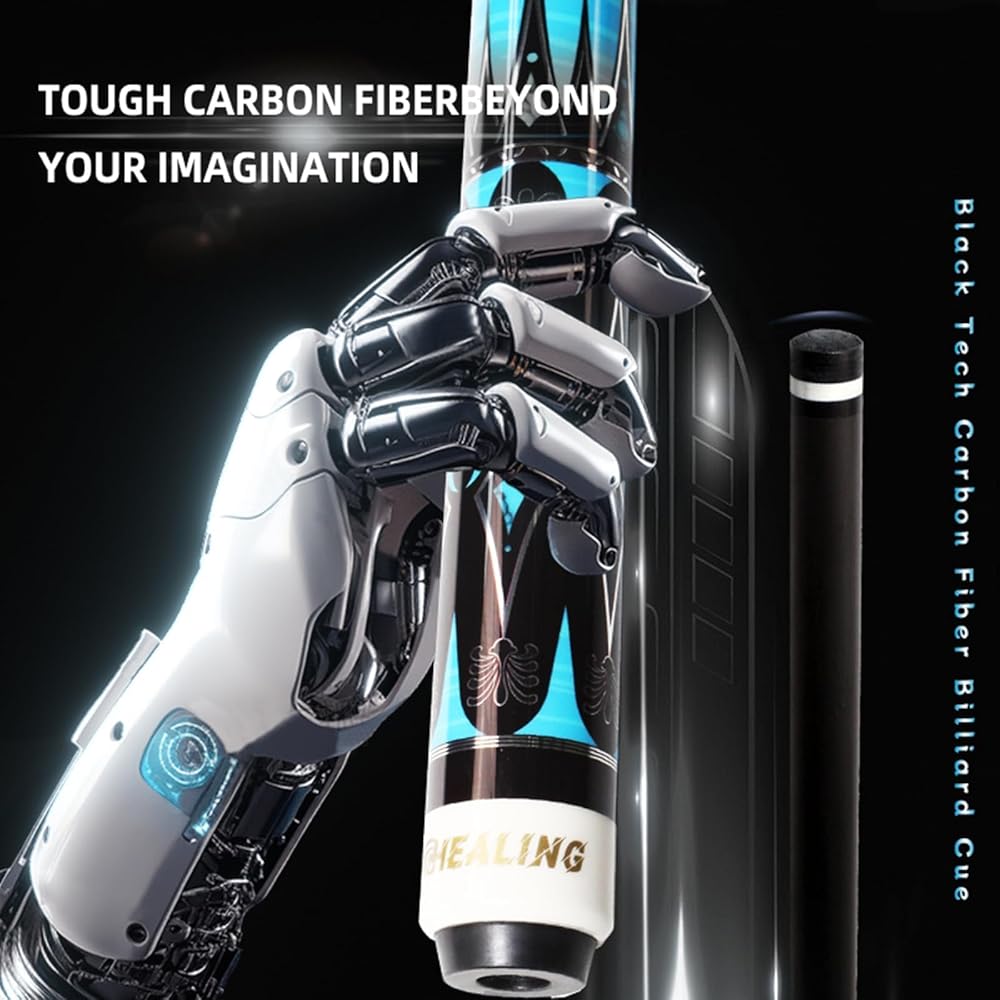 عصا بلياردو من ألياف الكربون، عصا لعب برأس 11.8 مم، عمود من ألياف الكربون بنسبة 100%، 1/2 عصا بلياردو احترافية، 58 بوصة مع موصل 8 أسنان لعشاق البلياردو
