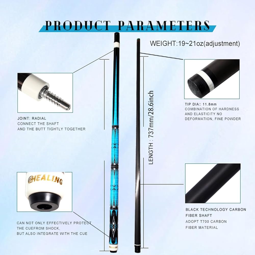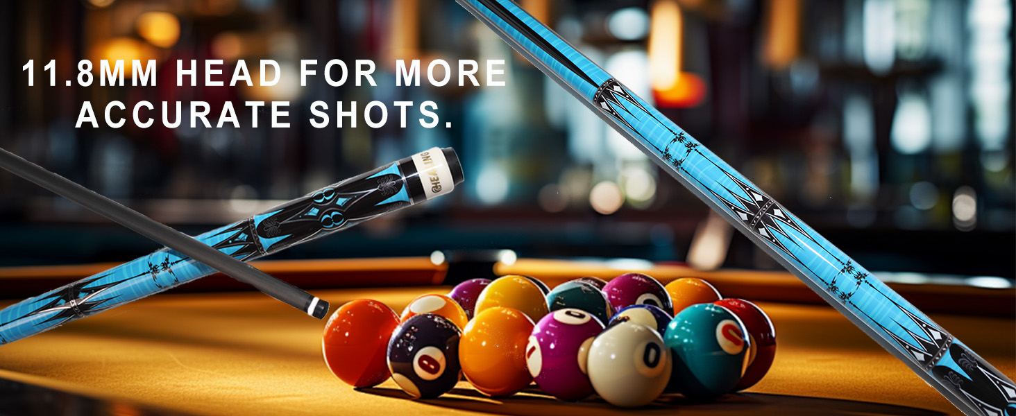 رأس دقيق: يوفر قطر رأس عصا البلياردو 11.8 مم دقة وتحكم ممتازين لتطبيقات الضرب والدوران الدقيقة.