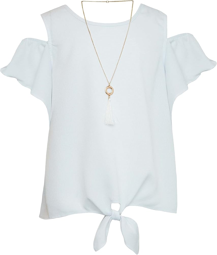 قميص علوي بأكتاف باردة وأكمام مرفرفة للفتيات من Amy Byer مع قلادة