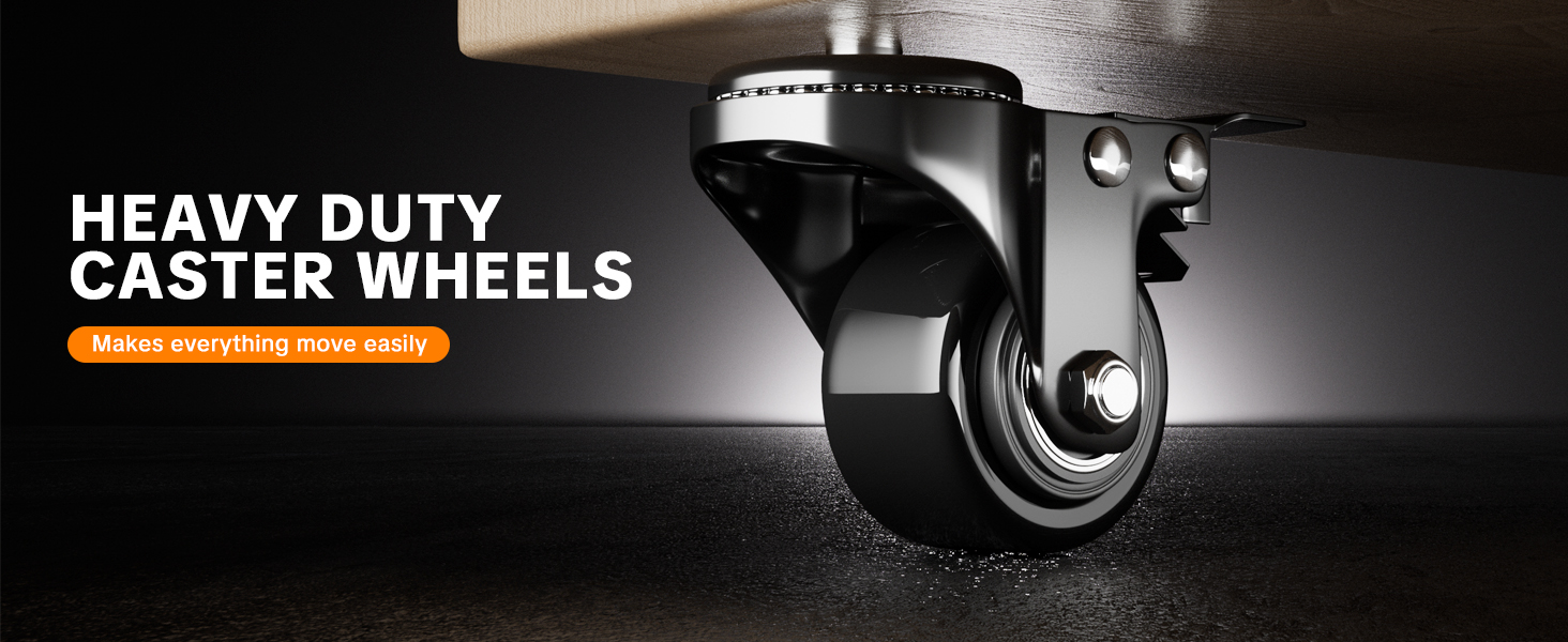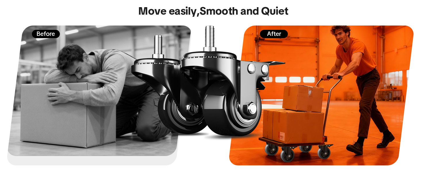 المرونة والأمان: المجاري المائية العلوية والسفلية مليئة بمحامل دوارة عالية الجودة تمكن العجلات من الدوران 360 درجة بسلاسة وسرعة ومرونة وصمت. العجلات مقاس 2 بوصة مغطاة بمطاط البولي يوريثين الفائق غير القابل للتشوه المناسب لجميع أنواع الأرضيات بما في ذلك الأرضيات الخشبية والخشب الصلب والصفائح والفينيل والبلاط والسجاد.