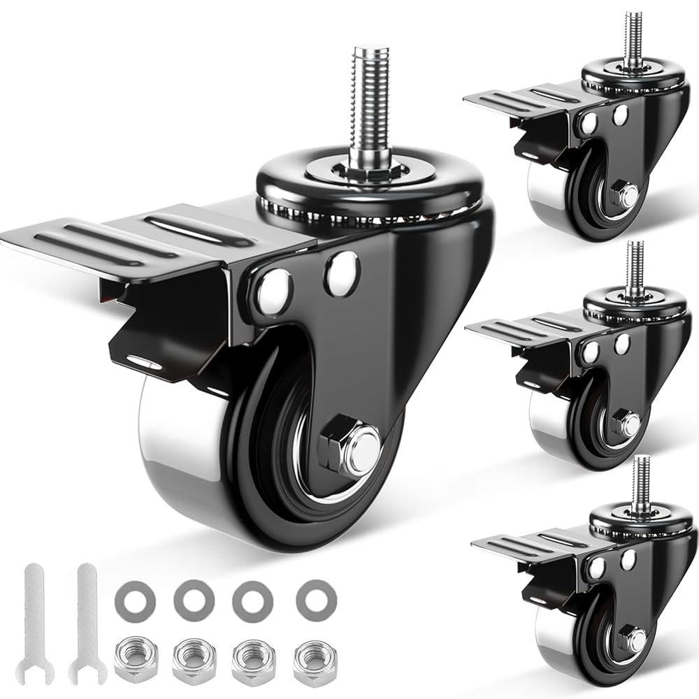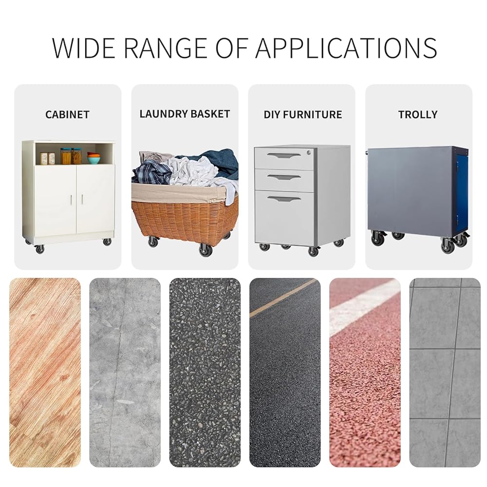تطبيق واسع - إضافة قدرة دوارة إلى كائنك الثقيل: عجلات العجلات الملولبة مناسبة لمختلف الاستخدامات الداخلية والخارجية، ويمكن ربطها بسرعة بمقاعد العمل، وحقائب الأدوات، وشوايات الشواء، ووحدات الرفوف، وغيرها من العناصر الشائعة في ورش العمل، والجراجات، والمطابخ، والمكاتب.