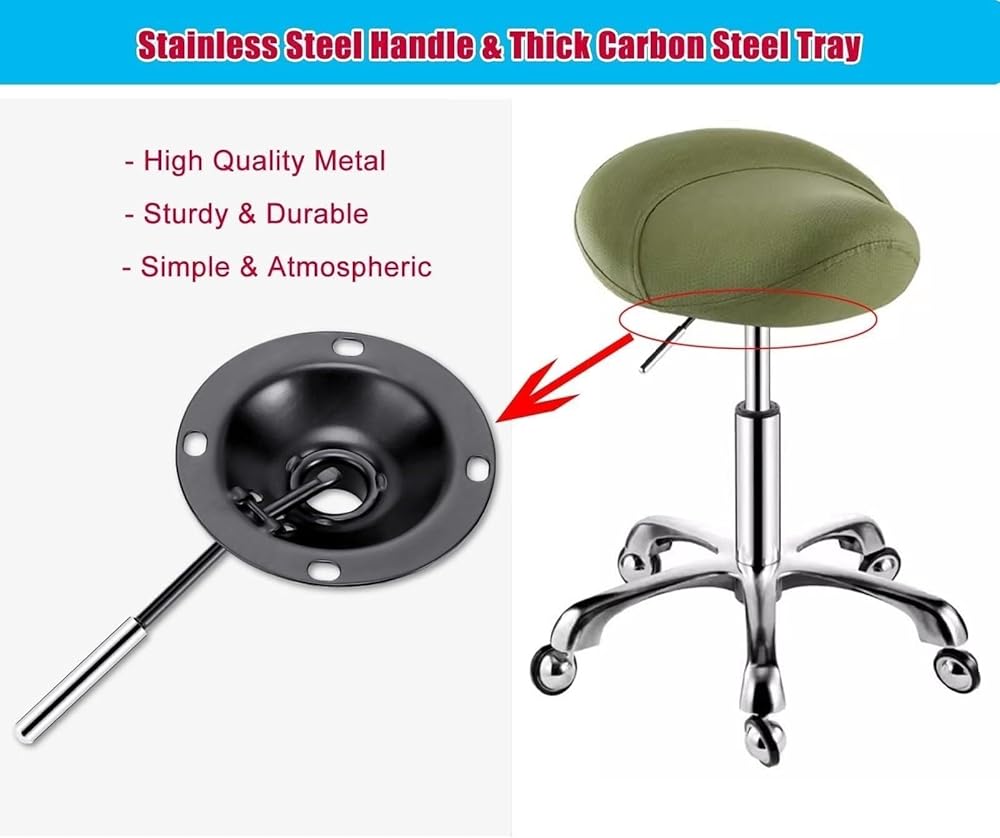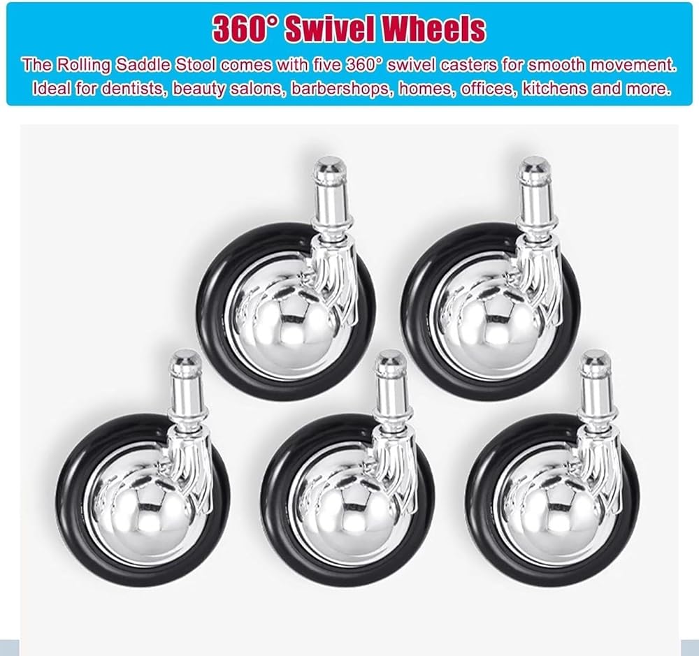 The saddle chair's ergonomic design is to improve posture, reduce back pain, and relieve pressure from your spine and lumbar discs. It promotes natural alignment, keeping you comfortable during long work sessions. The 360° swivel casters allow for smooth, quiet movement, effortless navigation without disturbing the environment.