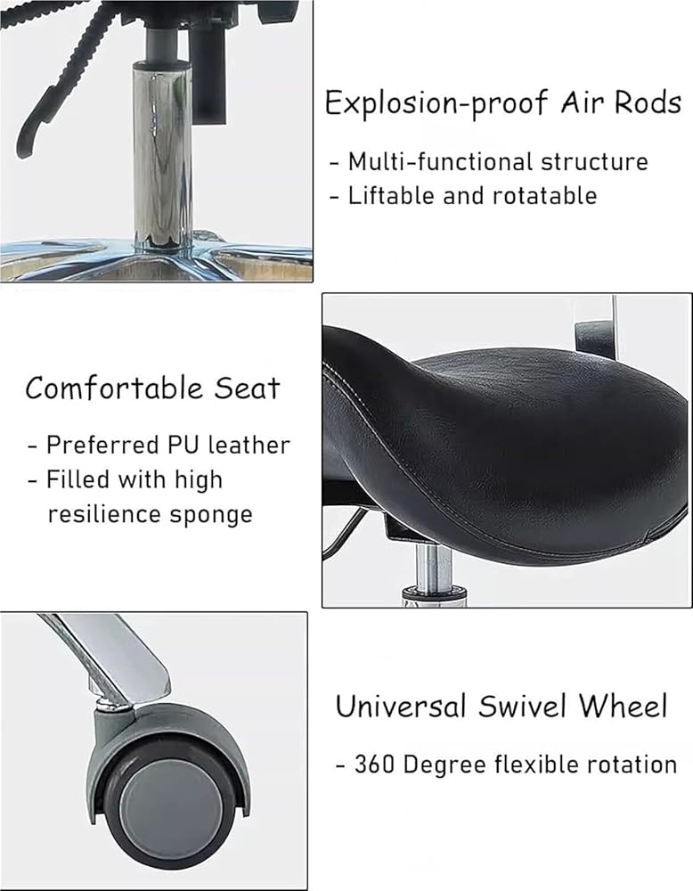 Built with a strong metal base and capable of supporting up to 264 lbs (120kg), this saddle stool is a long-lasting option for various settings. Perfect for professionals who need both comfort and mobility, this rolling stool is an choice for your everyday work needs.