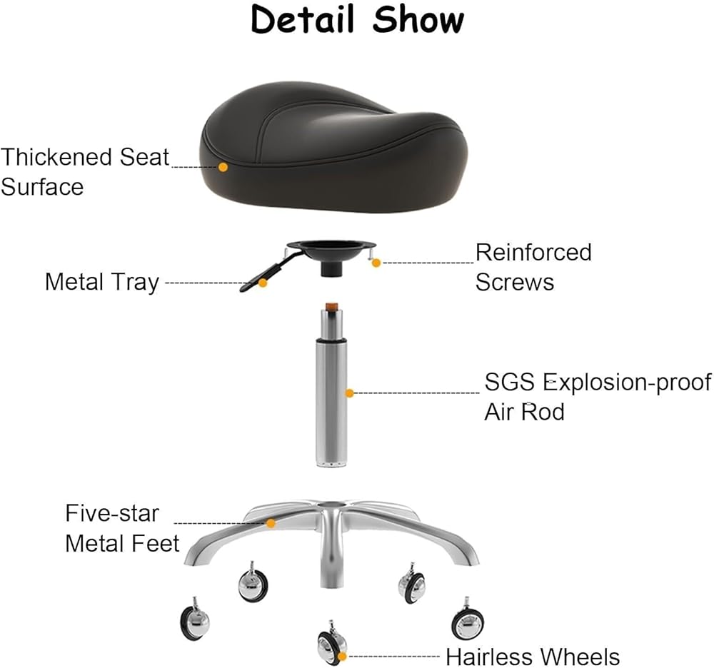 • Ergonomic Saddle Design: Promotes proper posture, relieves back pain, and reduces muscle strain, providing comfort during long work hours for professionals.