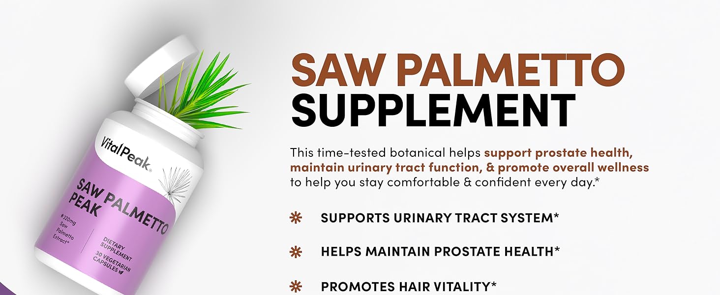 منشار بالميتو الفاخر لدعم البروستاتا للرجال: يوفر Saw Palmetto Peak 320 مجم من مستخلص توت بالميتو المنشاري للمساعدة في دعم صحة البروستاتا ووظيفة المسالك البولية لدى الرجال كجزء من روتين العافية اليومي الطبيعي.
