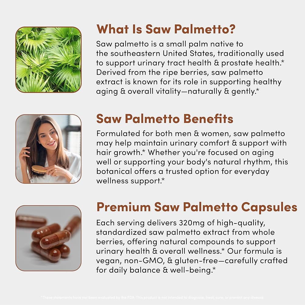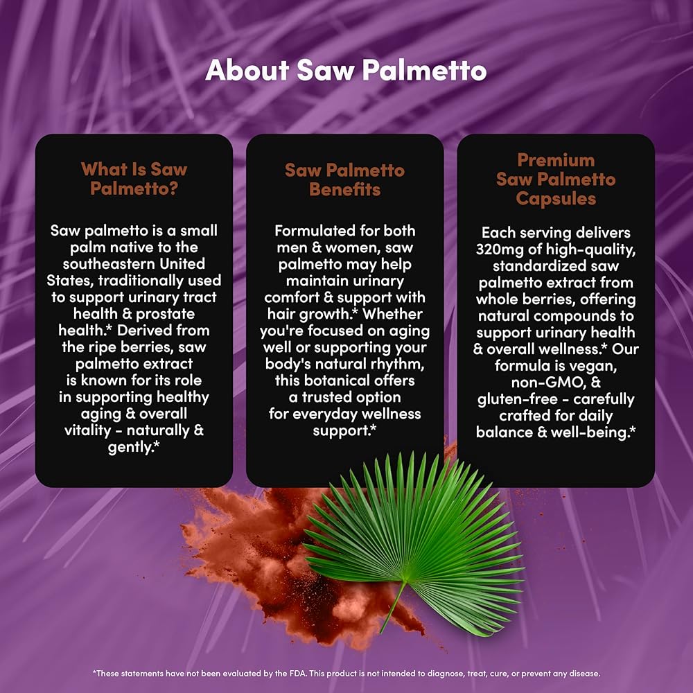 عافية شاملة لمنشار بالميتو للنساء والرجال: هذا المكمل العشبي متعدد الاستخدامات يدعم الحيوية الشاملة والتوازن الهرموني والعافية البولية - مثالي للبالغين الذين يبحثون عن دعم طبيعي ونباتي للصحة اليومية.