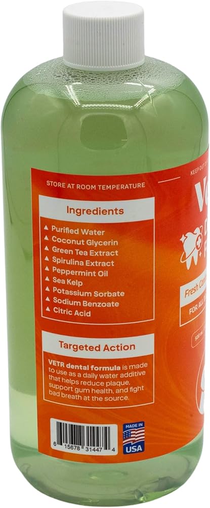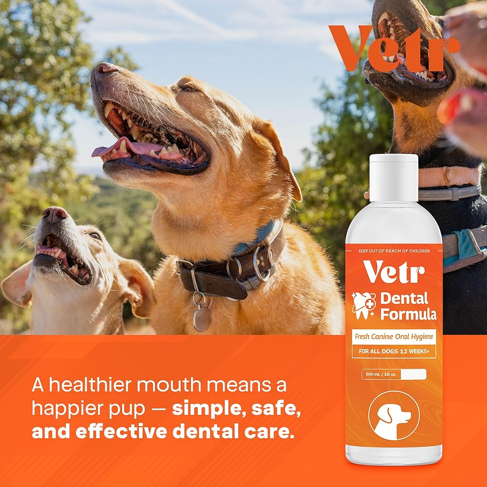 تركيبة Vetr لطب الأسنان للكلاب - مادة مضافة سائلة للعناية بالفم بنكهة النعناع مع إنزيمات لدعم التنفس والأسنان - تركيبة بيطرية في الولايات المتحدة الأمريكية (16 أونصة)